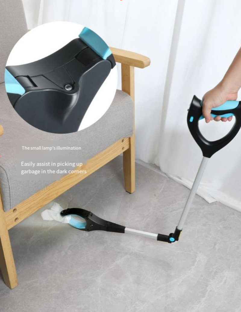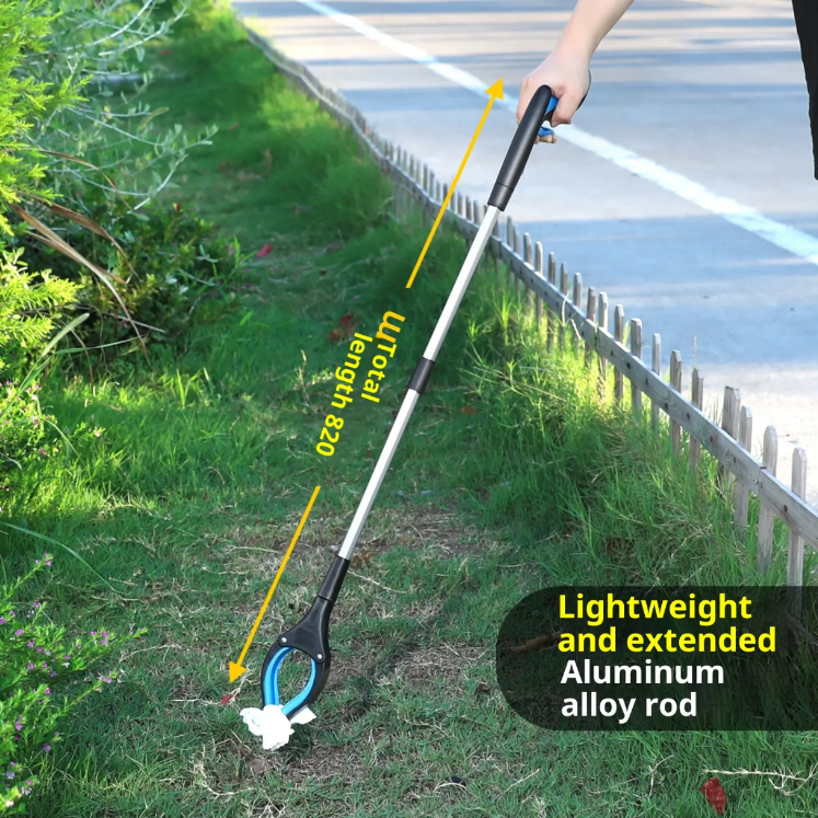 Seu cabo é feito de liga leve de alumínio, com comprimento total de 82 cm. Isso facilita recolher lixo do chão sem precisar se curvar, pegar controles remotos nas costuras do sofá sem precisar agachar e alcançar caixas de correio altas sem dificuldade. É amigável para pessoas com problemas nas costas, gestantes ou idosos, eliminando completamente o problema da "distensão nas costas".