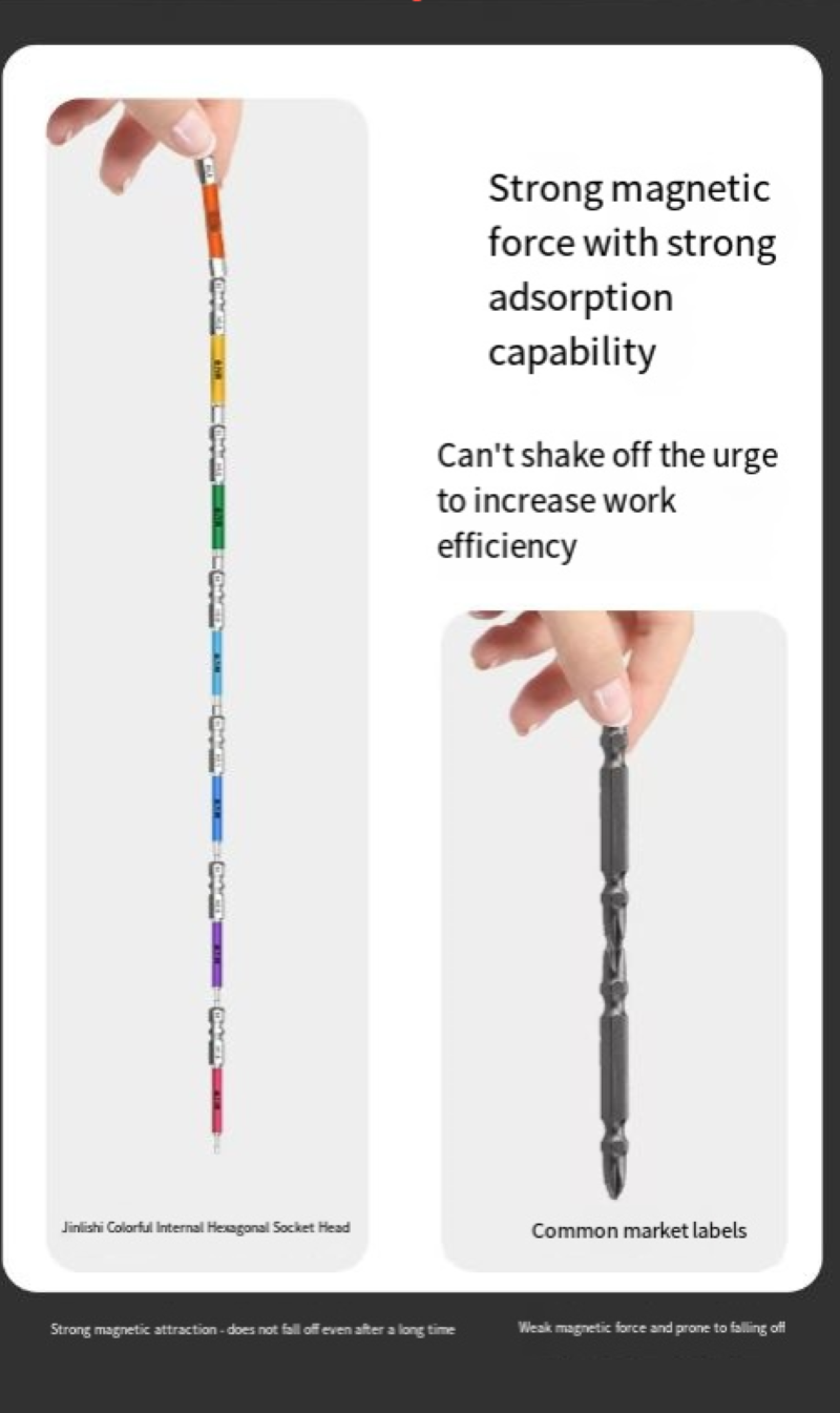 É feito de material de liga S2 de alta qualidade e forjado por meio de um processo especial de tratamento térmico, resultando em maior dureza. Mesmo quando submetido a impactos de alta intensidade ou torções repetidas, permanece "tão estável quanto uma montanha", sem propensa a deformação ou desgaste. Seja para desparafusar componentes metálicos ou para fixar móveis de madeira, ele pode "resistir ao teste do tempo" ao máximo. Sua vida útil é muito maior do que a dos parafusos comuns, garantindo que cada centavo investido valha a pena.