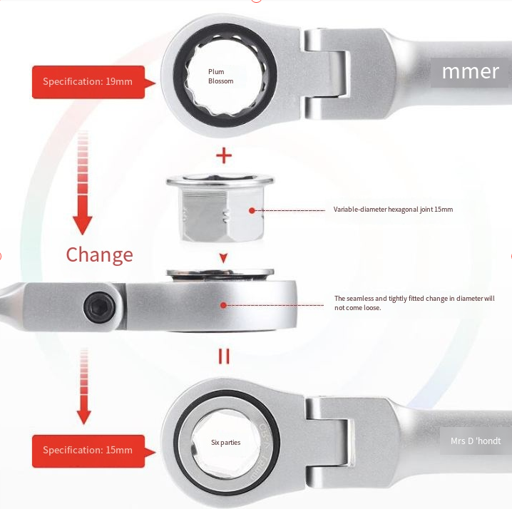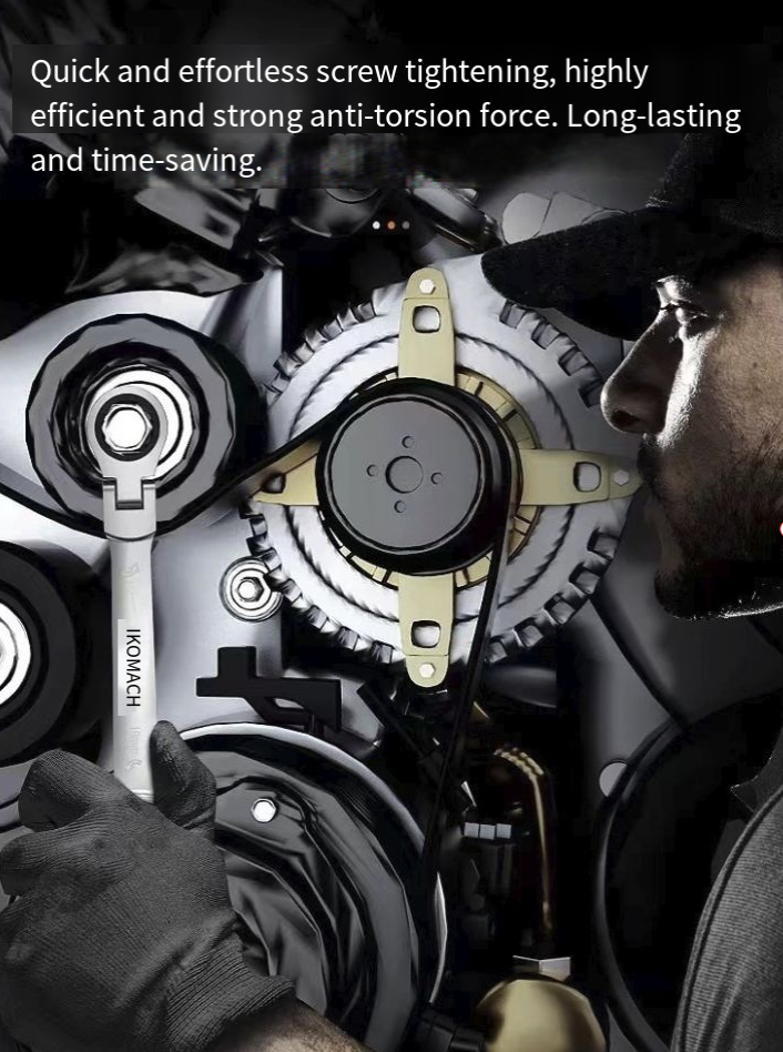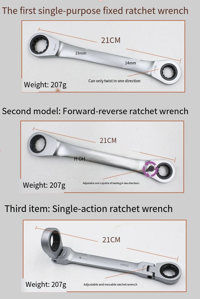 A catraca de precisão de 72 dentes pode mudar de direção em apenas 5 graus. A alavanca pode ser facilmente alternada entre configurações apertadas e soltas. Ela pode apertar parafusos rapidamente mesmo em furos profundos, e sua eficiência é o dobro da das chaves comuns. O material de aço CR-V cromo-vanádio é cromado para prevenção de ferrugem, e não escorrega nem se desgasta mesmo quando usado em óleo, água ou manchas. É durável e resistente.