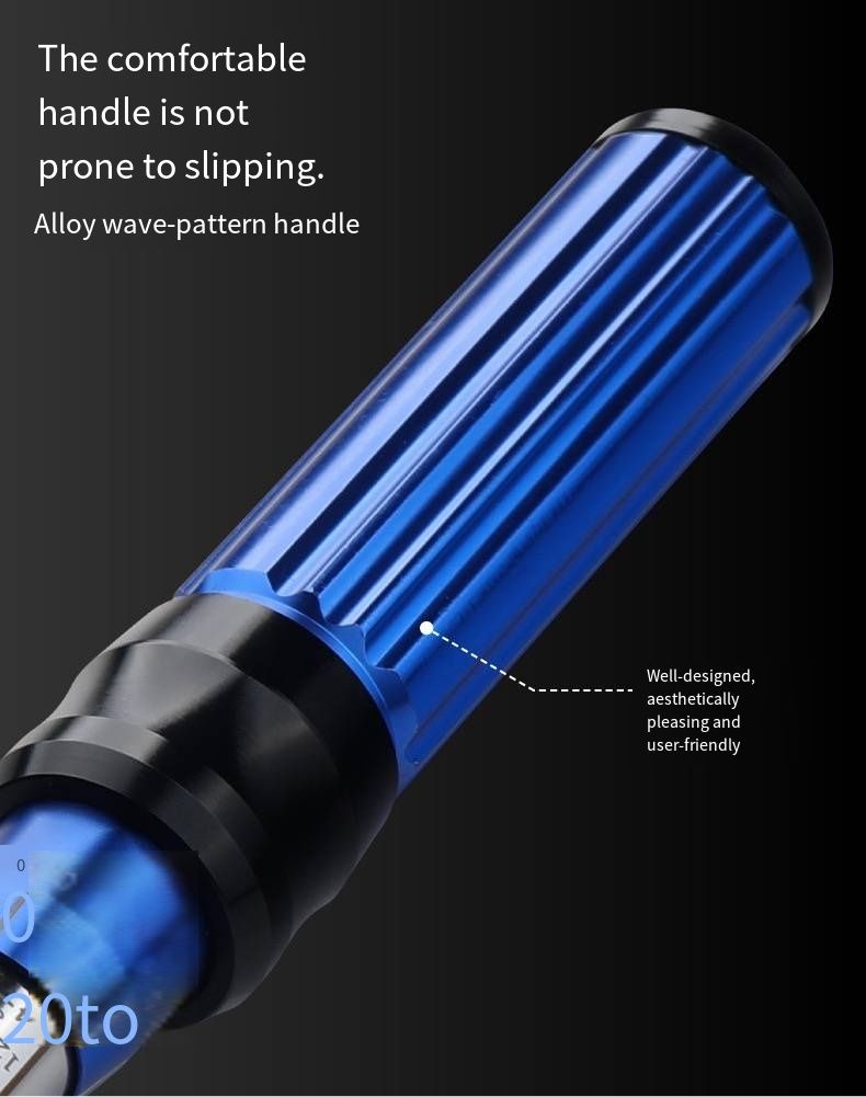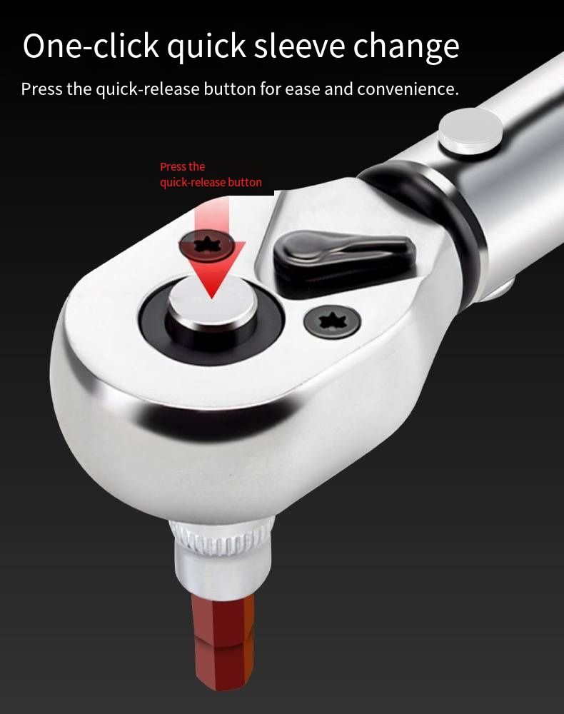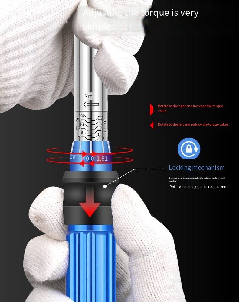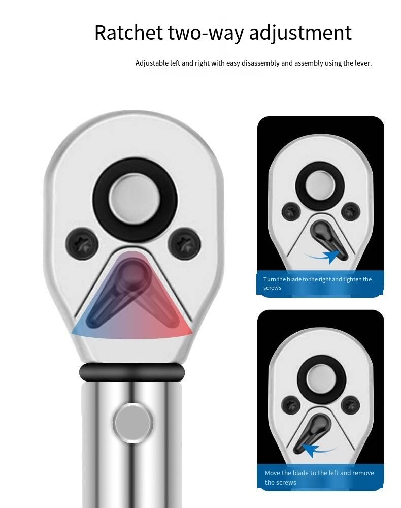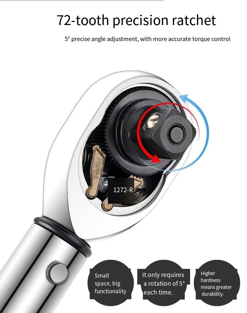O núcleo desse produto é o controle de torque de alta precisão: a cabeça de catraca de 72 dentes funciona suavemente, e o ajuste de torque é preciso até 0,1 N·m. Ao apertar, ele se desengata automaticamente e faz um som de "clique" ao atingir o torque pré-definido, evitando apertar demais e danificar as peças ou riscos de aperto insuficiente. É especialmente adequado para a montagem precisa de motocicletas, pequenas peças de automóveis e dispositivos eletrônicos.