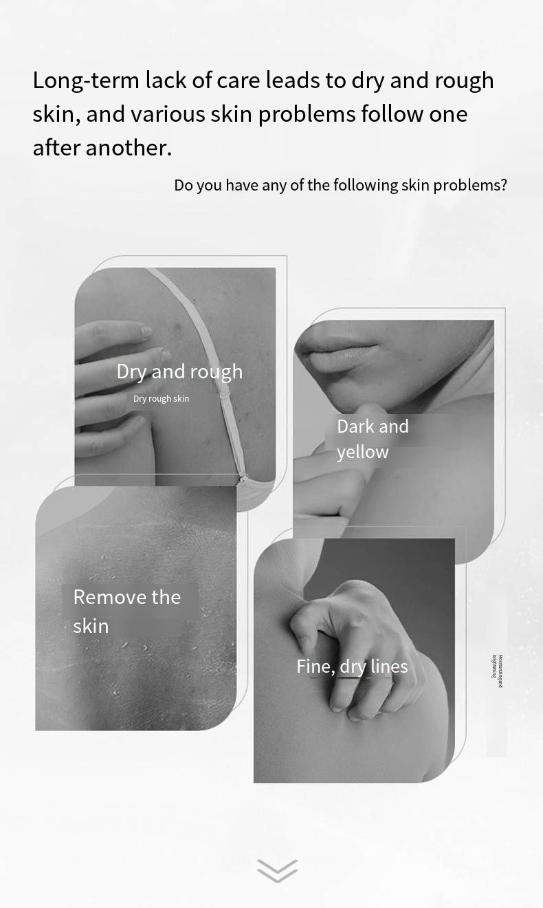 Seja por linhas secas, opacidade ou pele áspera de galinha, pode melhorar instantaneamente todos esses problemas – após a aplicação, a pele fica macia e luminosa, e fornece hidratação duradoura até o dia seguinte. De agora em diante, deixe cada centímetro da sua pele o mais sensível possível, capaz de extrair umidade!