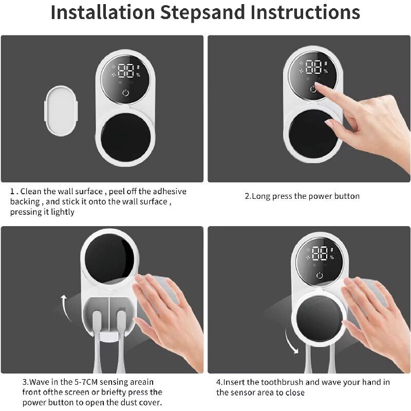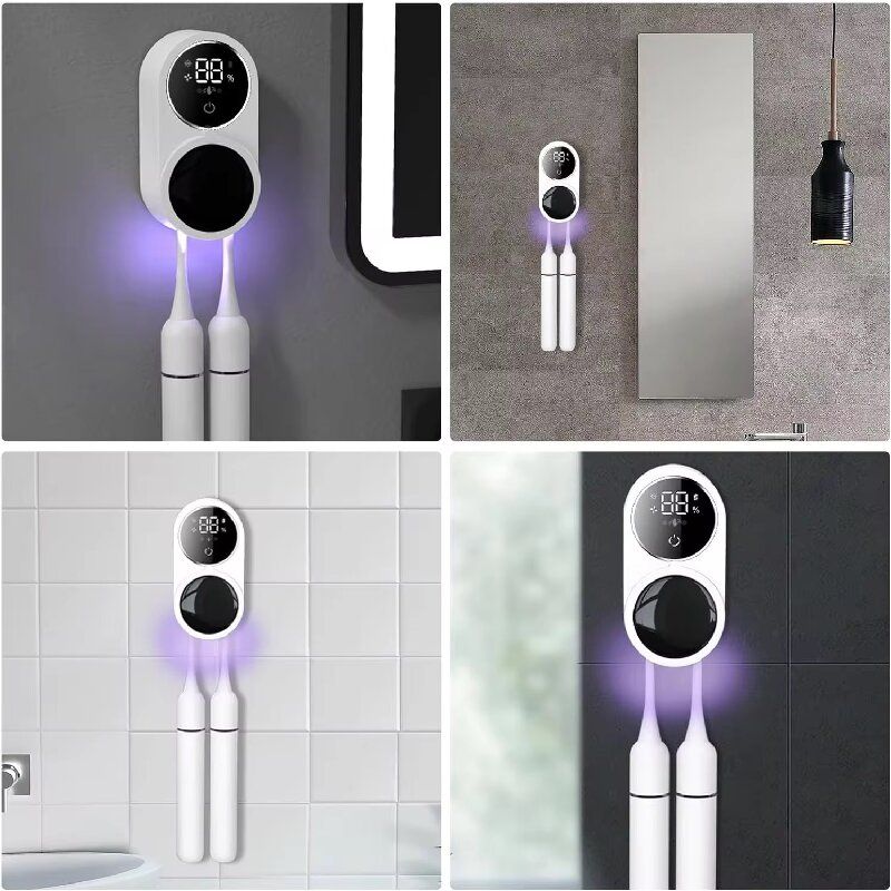 O design montado na parede não ocupa espaço na bancada. Pode ser carregado via Tipo-C uma vez e dura várias semanas. O display digital no painel de operação pode mostrar claramente o nível da bateria e o estado de funcionamento. Os slots duplos para cartão são compatíveis com a maioria das escovas elétricas ou manuais, facilitando a distinção entre casais ou cônjuges. Desde os detalhes da abertura e fechamento do sensor até a função principal de esterilização e secagem, ele integra a "inteligência" à lavagem diária, tornando cada sessão de escovação uma experiência de saúde reconfortante.
