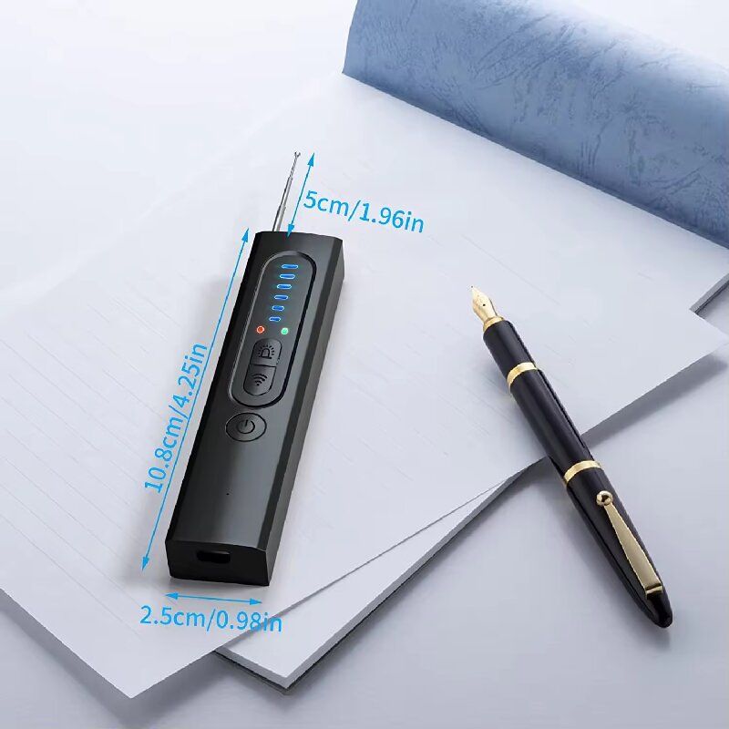 É um dispositivo "fácil de operar". Com a operação com um clique, após ligar, você pode alternar entre os modos de varredura infravermelha ou detecção de sinal. Nenhum conhecimento profissional é necessário. O corpo é pequeno e portátil, do tamanho de uma caneta, que pode ser colocado no bolso ou na mochila, e pode ser transportado durante viagens de negócios ou viagens, proporcionando proteção de privacidade "com você". A função de alarme de vibração alerta imediatamente quando uma situação anormal é detectada, permitindo que você entenda o risco no primeiro momento.