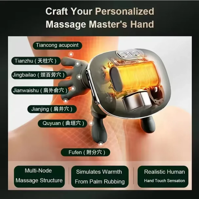 Possui uma cabeça de massagem biônica em forma de dedo que imita com precisão a força de amassamento e o ângulo de um dedo humano real. Os 8 dedos se entrelaçam para "apertar" as lacunas dos músculos cervicais, e o "polegar" na parte inferior puxa o músculo trapézio. Assim como as mãos de um massagista profissional, alivia suave e poderosamente a rigidez e a dor no pescoço e nos ombros. O silicone de qualidade alimentar é seguro e amigo da pele, e até mesmo peles sensíveis podem usá-lo com tranquilidade.