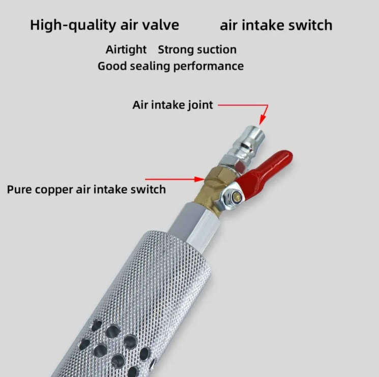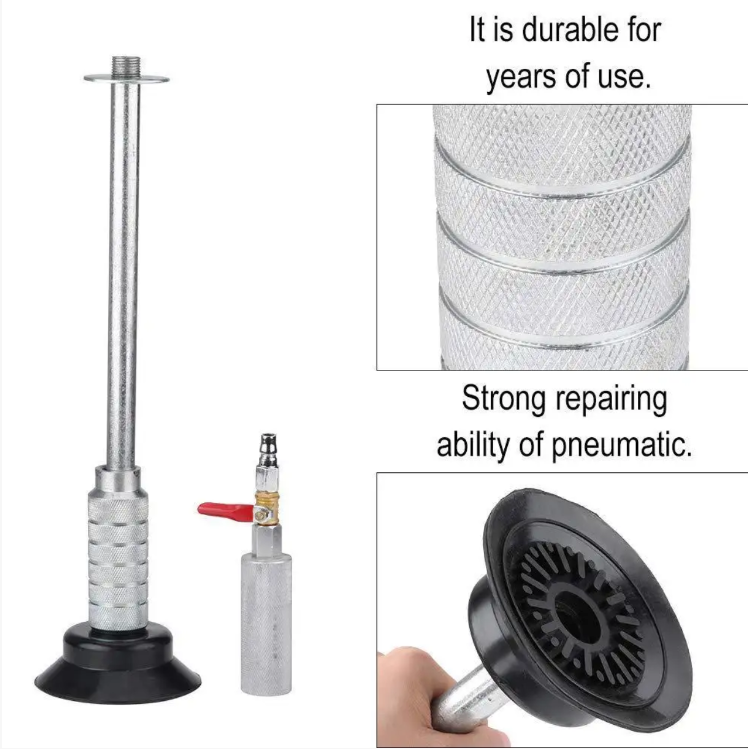 É a "máquina" de operação. Sem a necessidade de habilidades profissionais de pintura ou chapa metálica, basta alinhar a ventosa com o amassado e iniciar o interruptor pneumático para puxar facilmente. Os acessórios são ricos, adequados para diferentes tamanhos e formas de amassados; O design da alça é fácil e até mesmo as mulheres podem operar de forma independente, fazendo reparos de amassados em casa e economizando muitos custos de reparo.