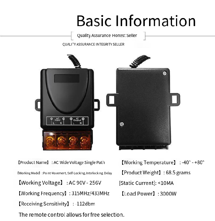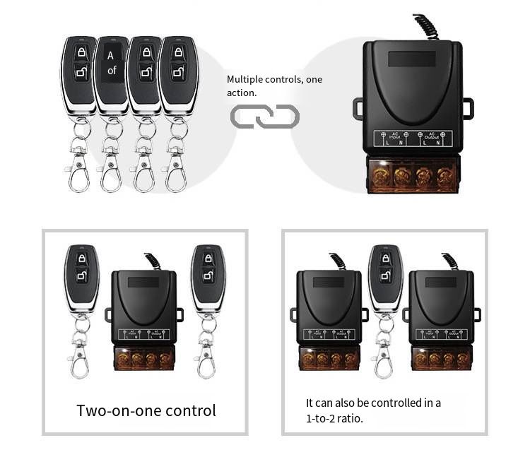 Seja o controle automatizado de portas de garagem, persianas eletrônicas ou portões telescópicos, ou a comutação flexível de luzes domésticas, equipamentos aquáticos, roteadores e outros aparelhos elétricos, este interruptor de controle remoto sem fio inteligente pode lidar com todos eles com facilidade. Com sinais sem fio estáveis e operações de botão convenientes, ele rompe as limitações espaciais, permitindo que você controle equipamentos elétricos com "um botão" em cenários como garagem, jardim e sala de estar, trazendo soluções de controle eficientes e inteligentes para áreas como gerenciamento de garagem e vida doméstica, redefinindo os métodos de controle de equipamentos elétricos e integrando conveniência e inteligência em todos os cenários de uso elétrico.