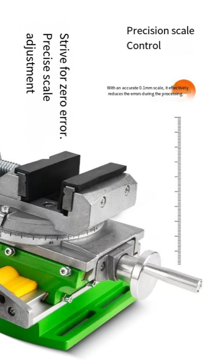 Bancada em forma de cruz: Ao girar a alça, a peça pode se mover suavemente para frente, para trás, para a esquerda e para a direita. Se quiser mover 3 milímetros ou 5 milímetros, foque na escala precisa do corpo da morsa e gire sem depender de "adivinhar às cegas" com os olhos.