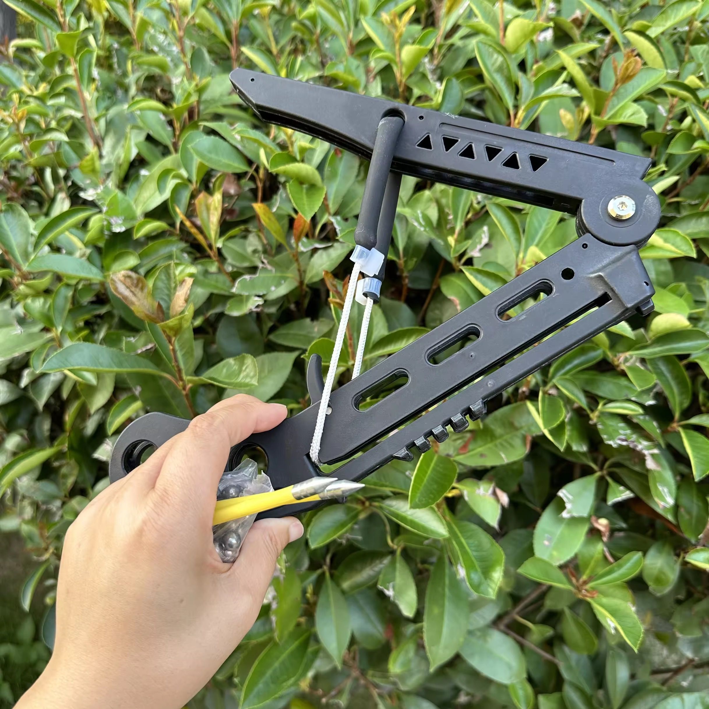No momento em que é retirado do bolso, é um esqueleto preto dobrável de guerreiro que pode ser segurado na palma da mão: a carcaça de plástico preto fosco é gravada com padrões ocos bem elaborados, e os parafusos prateados adicionam um toque industrial de sofisticação. No estado dobrado, ela tem apenas o tamanho da palma da mão, cabendo facilmente em um bolso ou bolso lateral de uma mochila, sem nenhum peso, tão leve que parece que nenhum equipamento está sendo usado – mas assim que a ponta do dedo clica no cabo e o dobra suavemente, a articulação faz um som de "clique", e a corda elástica esticada se expande instantaneamente, o esqueleto de bordas afiadas se desdobra em uma forma de estilingue totalmente tensionada. O processo de transformação, com uma forte sensação mecânica, é em si mesmo um tipo de prazer que alivia o estresse.