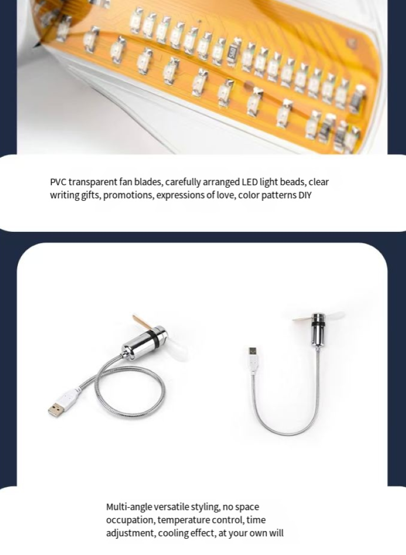 Você se irrita com o calor quando trabalha ou estuda no verão? Este mini ventilador USB colorido não só sopra ar, mas também integra um "relógio + termômetro" nas pás do ventilador. É prático e atraente para quem se importa com a aparência!