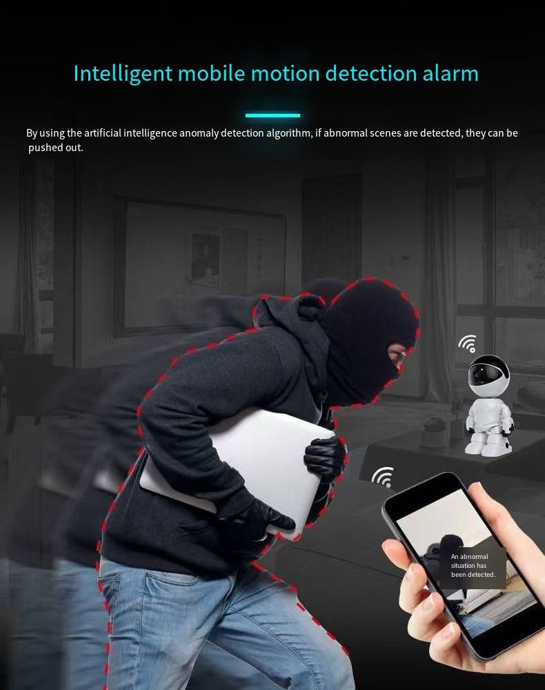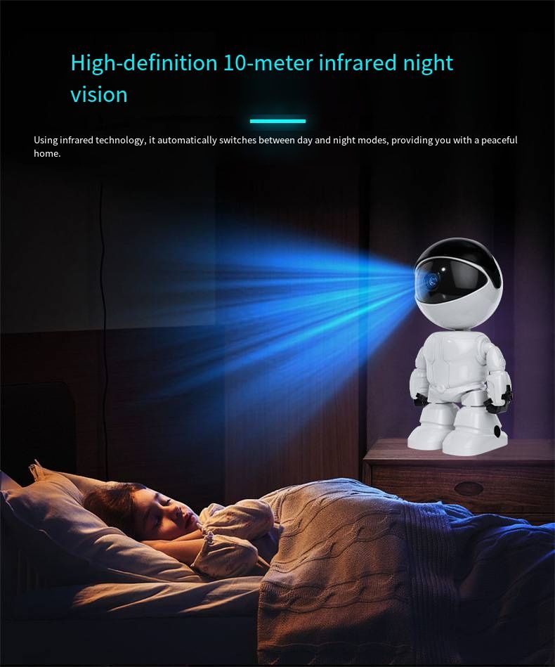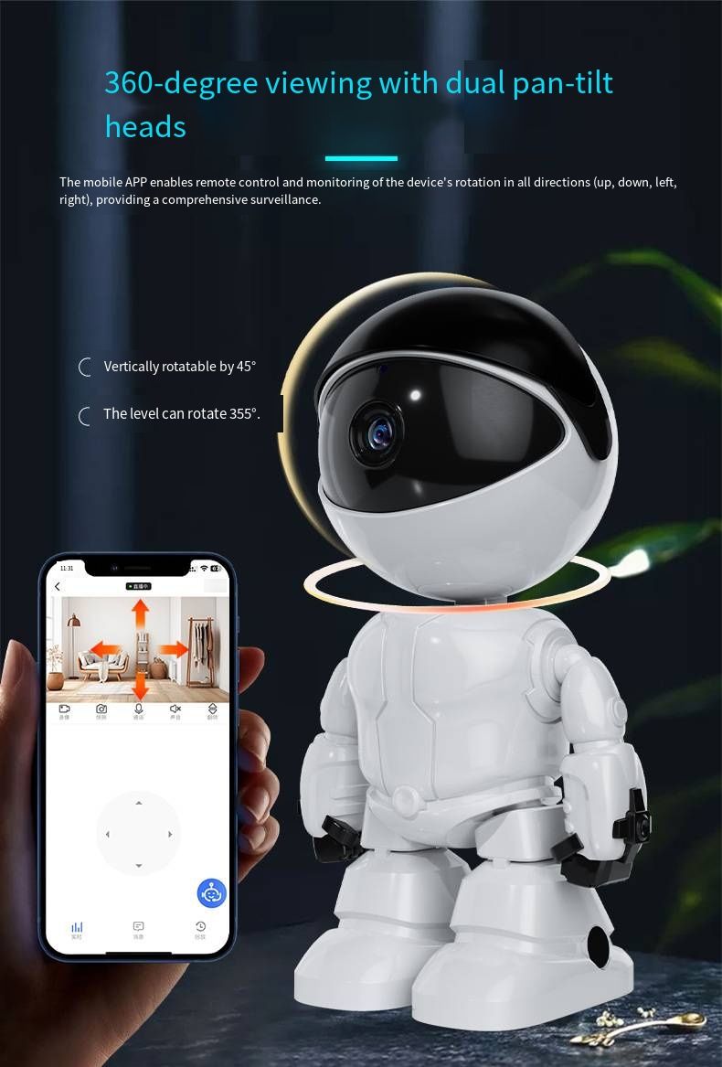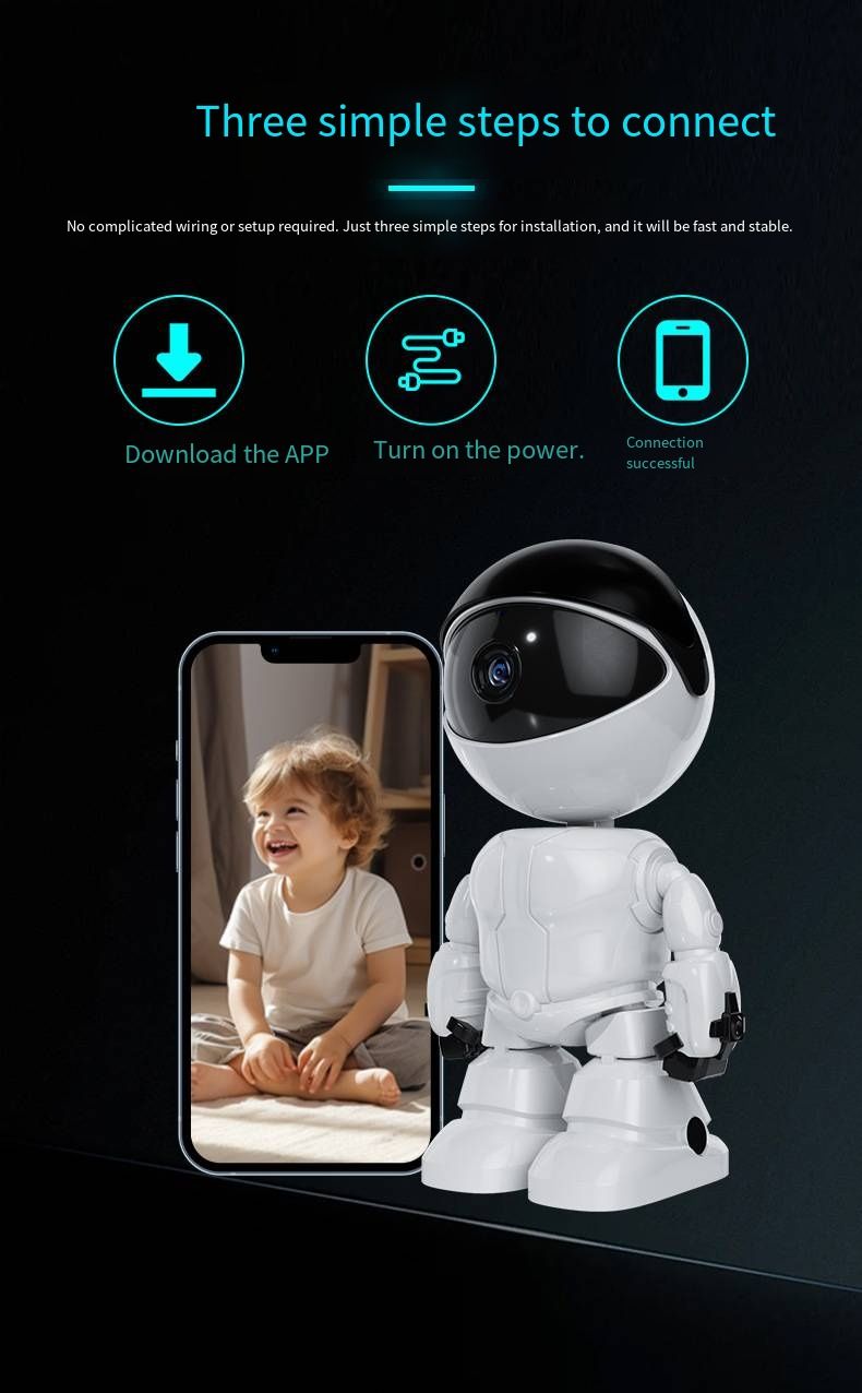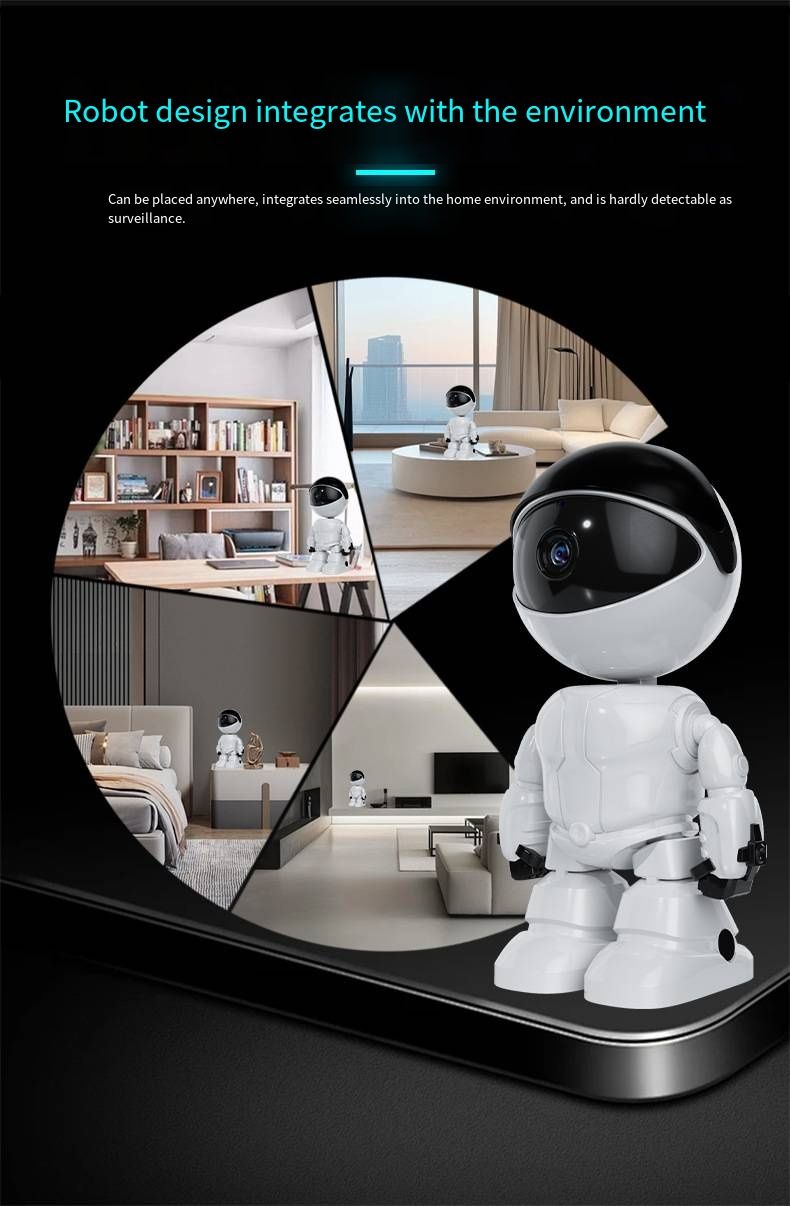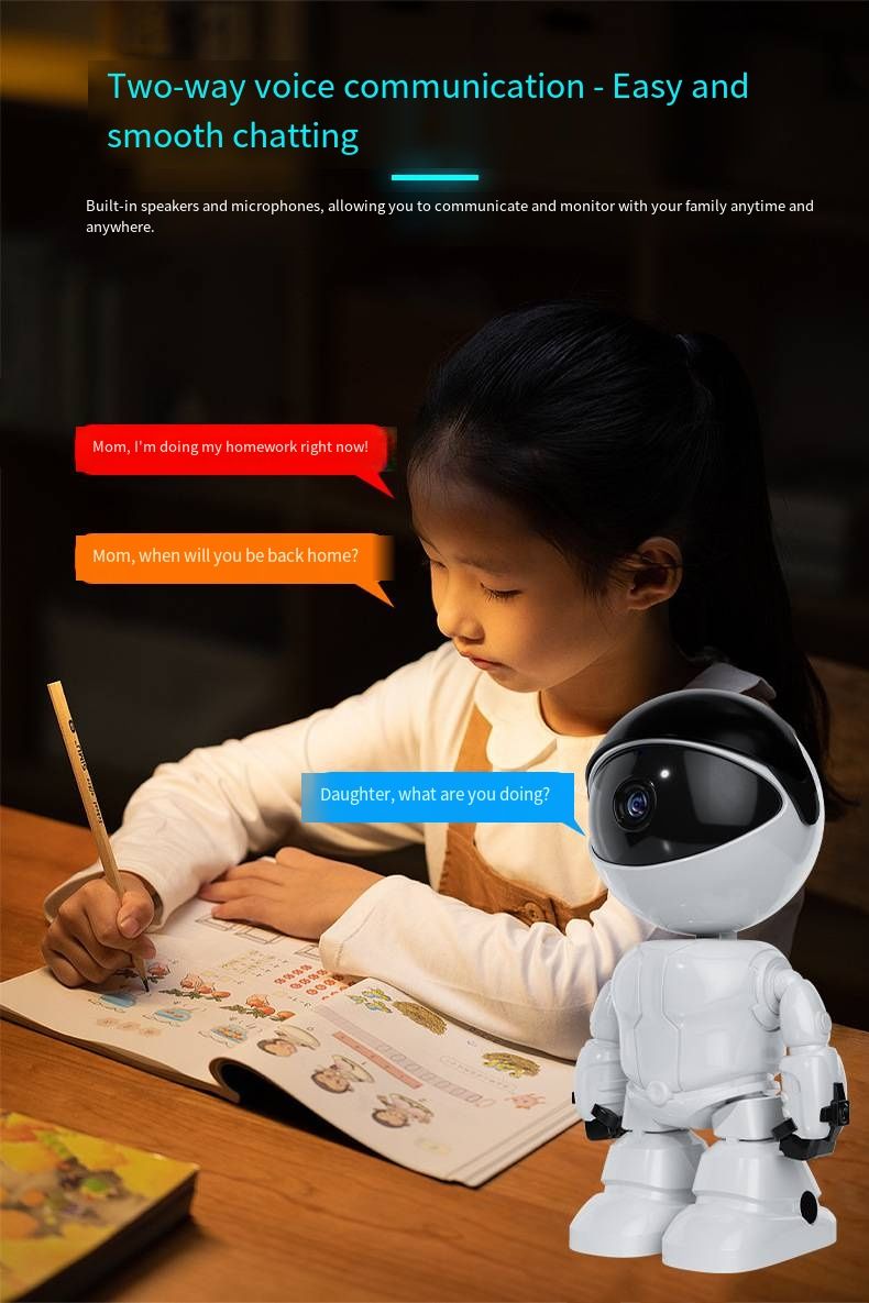 Esta câmera de vigilância robô inteligente é o "guardião fofo" para a segurança doméstica. Escondido em forma de robô, pode ser integrado ao ambiente como um item decorativo e é improvável que seja notado por sua função de vigilância. Possui qualidade de alta definição 1080P, suporta conexão Wi-Fi e pode ser visualizado remotamente por meio de um dispositivo móvel. A câmera pode girar 355° horizontalmente e 60° verticalmente, alcançando vigilância em sala inteira e sem canto. Ele também possui detecção humana de IA, funções de visão noturna e comunicação de voz bidirecional. É equipado com um cartão TF máximo de 128G para armazenamento e reprodução de vídeo. Seja para cuidar de bebês, ficar de olho em animais de estimação ou proteger a segurança da família, ele pode registrar com precisão cada momento, permitindo que você acompanhe a situação da casa a qualquer momento e se sinta à vontade e conveniente.