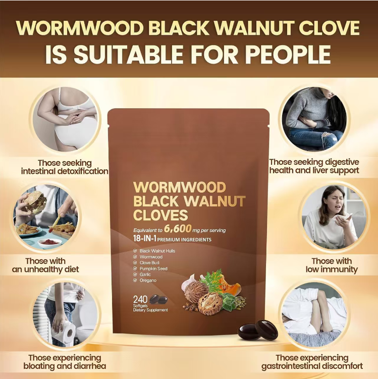 Cada cápsula contém 6600mg de essência herbal, equivalente a extrair os componentes eficazes de nogueira preta, absinto amargo, etc., e enchê-los na cápsula – não precisa ferver chá ou cozinhar sopa, 3 cápsulas por dia, e com um copo de água morna, pode fornecer um "lanche" ao estômago.