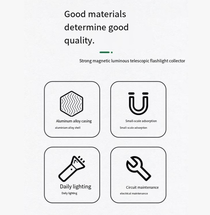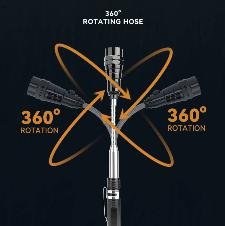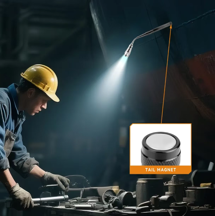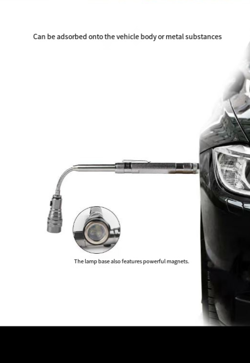 Quando parafusos caem profundamente no compartimento do motor durante reparos do carro ou porcas rolam em fendas durante reformas residenciais e ficam fora de alcance, essa lanterna magnética retrátil flexível é a "ferramenta mágica" para resolver esses problemas.
