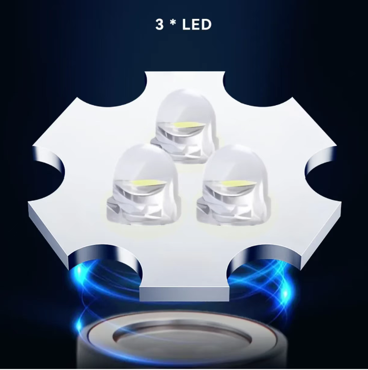 Em segundo lugar, possui uma configuração de fixação magnética dupla: o anel externo da lanterna da cabeça é magnético, e uma cabeça magnética separada é posicionada na cauda. Isso não só segura firmemente parafusos, porcas e outras peças metálicas para evitar que caiam novamente, mas também pode fixar toda a ferramenta no chassi do carro, prateleiras de metal, etc., liberando completamente as mãos e tornando a operação e a iluminação mais eficiente.