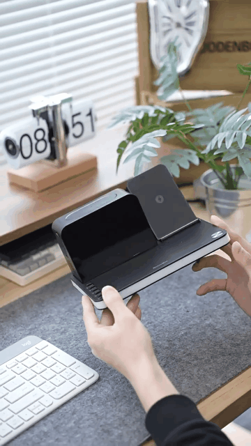 É o "polivalente" no campo de carregamento, suportando o carregamento simultâneo de vários dispositivos, como telefones, fones de ouvido e relógios. A área de carregamento sem fio é compatível com os modelos convencionais e a porta de carregamento rápido com fio tem uma potência de 30W, tornando o processo de carregamento mais rápido do que outros. Seja um iPhone, um telefone Android, AirPods ou um smartwatch, você pode encontrar suas posições de carregamento dedicadas aqui, dizendo adeus ao constrangimento de "dispositivos na fila para carregar".
