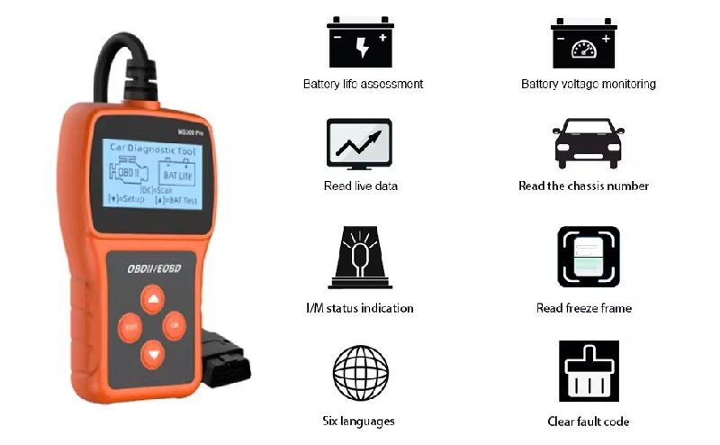 "Car Doctor" essencial para proprietários: dispositivo de diagnóstico MS309 Pro OBDII, diagnóstico de falha do veículo com um clique
