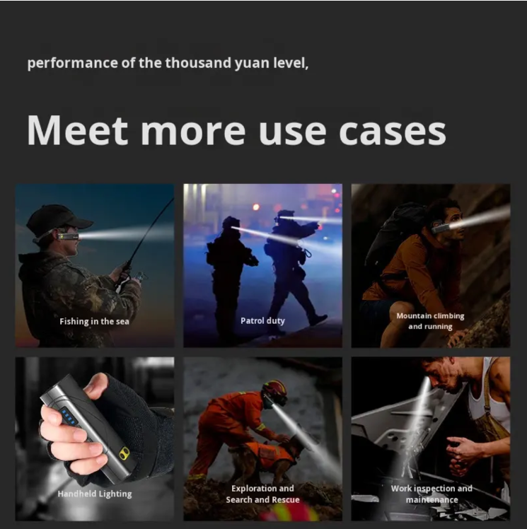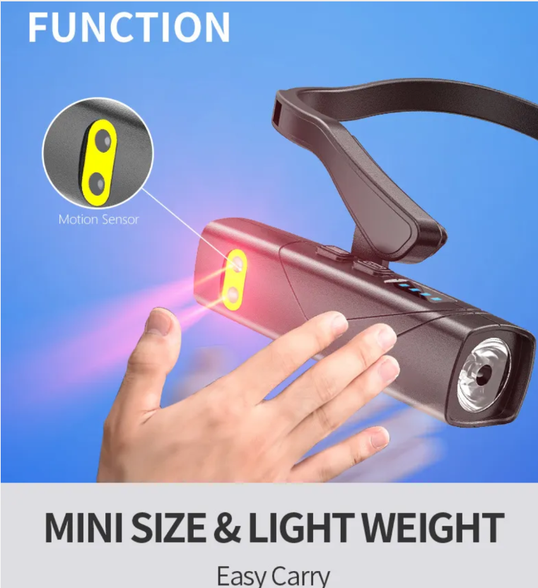 Não será mais sobrecarregado pelo farol incômodo, não precisa liberar as mãos para tocar no interruptor – este farol com sensor montado no ouvido é leve como uma pluma, brilhante o suficiente, pode ser usado com um aceno de mão, aguenta cenários de uso durante toda a noite, fácil e prático.