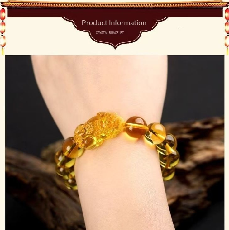 Há vários tamanhos de contas disponíveis: 8mm/10mm/12mm/14mm. O tamanho pequeno faz o pulso parecer esguio e vibrante, o tamanho grande o torna mais elegante e estável. Seja uma mão delicada e de pele clara ou um pulso fino e distinto, você pode encontrar o modelo adequado. Além disso, a textura do cristal amarelo imitativo é transparente e lustrosa, não pesada ou abafada quando usada, e é confortável para o dia inteiro. Pode ser combinada com deslocamentos diários, encontros de amigos ou até ocasiões casuais, e até uma camiseta simples pode destacar sua sofisticação.