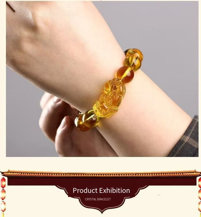Quem poderia recusar um fio de pulseiras que podem "brilhar"? Essa pulseira de cristal amarelo imitação com cabeça de raposa traz instantaneamente um clima "luxuoso" quando usada – as contas de cristal amarelas e claras, brilhando com uma luz dourada quente à luz, fazem o pulso parecer mais branco, e até os pequenos movimentos ao levantar a mão ficam mais refinados.