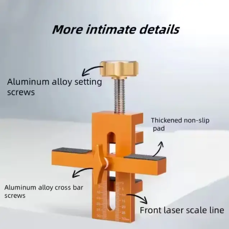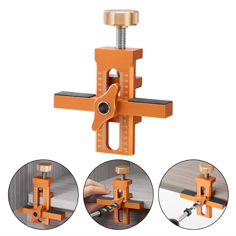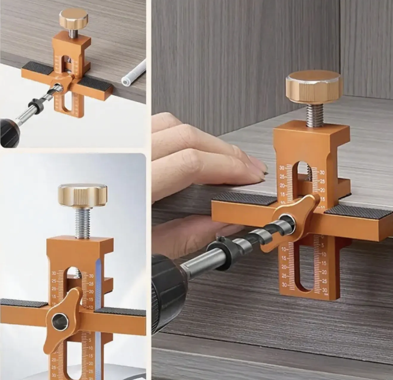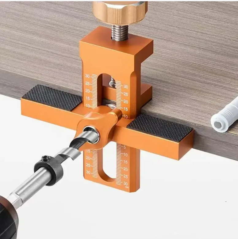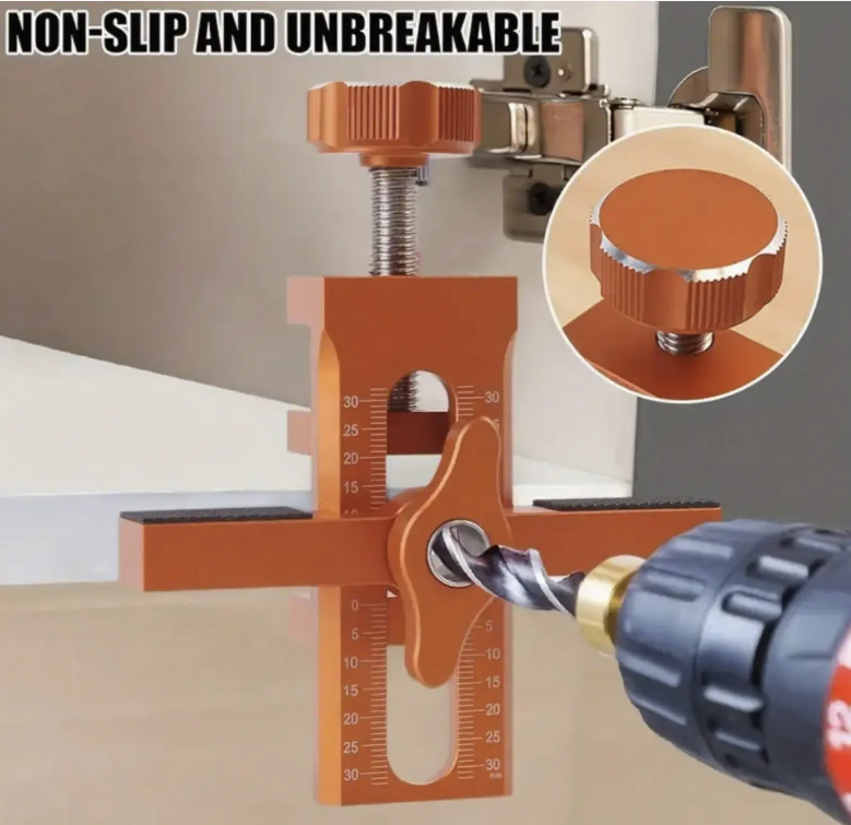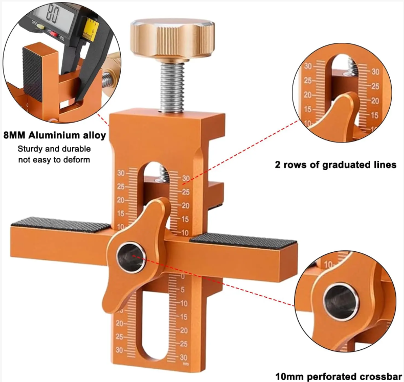 É feito de liga de alumínio resistente à ferrugem e durável, leve e durável. A superfície é marcada com réguas de escala, permitindo um posicionamento preciso em relação ao milímetro. A estrutura transversal pode ser ajustada para cima, para baixo, para a esquerda e para a direita. Seja furando tábuas de madeira, montando corpos de armários ou instalando dobradiças de portas de armários, ele pode fixar firmemente a peça, evitando que ela se mova ou desvie durante a operação.