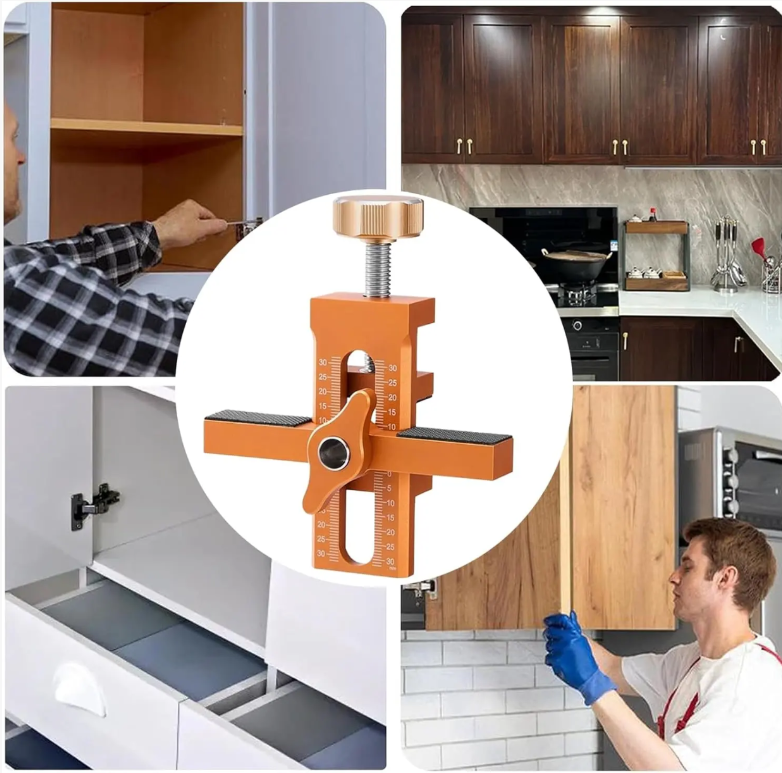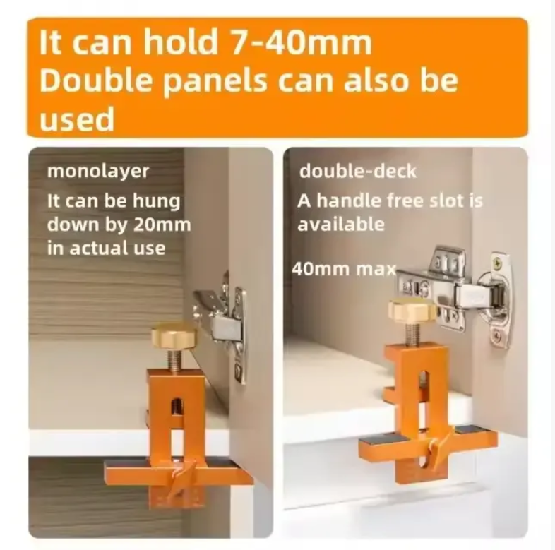 No passado, ao trabalhar com marcenaria, era preciso confiar em mão firme ou em desperdiçar materiais. Agora, com seu posicionamento preciso, os furos não serão perfurados de forma desigual e as juntas não serão inclinadas. Isso não só economiza materiais, mas também melhora a qualidade. Seja para entusiastas da marcenaria que fazem faça-você-mesmo ou para trabalhadores de melhorias residenciais correndo para concluir tarefas, é um equipamento eficaz e confiável que pode "melhorar a eficiência e reduzir erros". O corpo principal é feito de liga de alumínio à prova de ferrugem, que é resistente a choques e não se deforma. A abertura de fixação é equipada com almofadas de borracha antiderrapante, para que, ao prender a porta do armário, não arranhe o painel. Você pode usar madeira maciça, placa densa e placa acrílica com segurança. Mesmo após a instalação da porta do armário, ela permanece intacta.