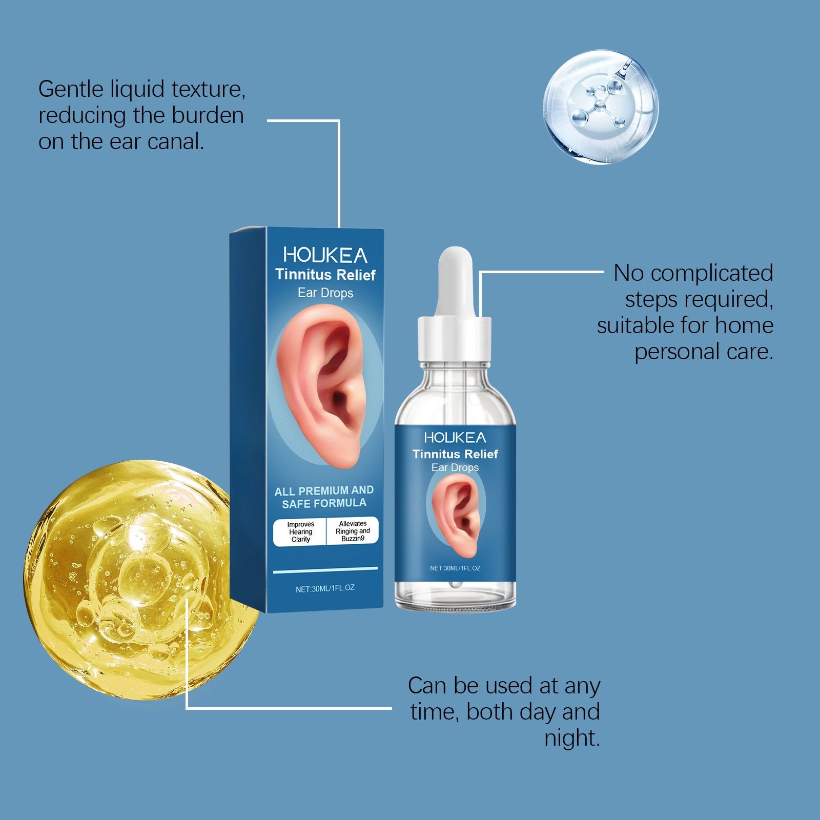 Quando o zumbido nos ouvidos interrompe repetidamente o ritmo, as gotas para alívio da dor nos ouvidos HOUKEA são o antídoto suave para o canal auditivo.