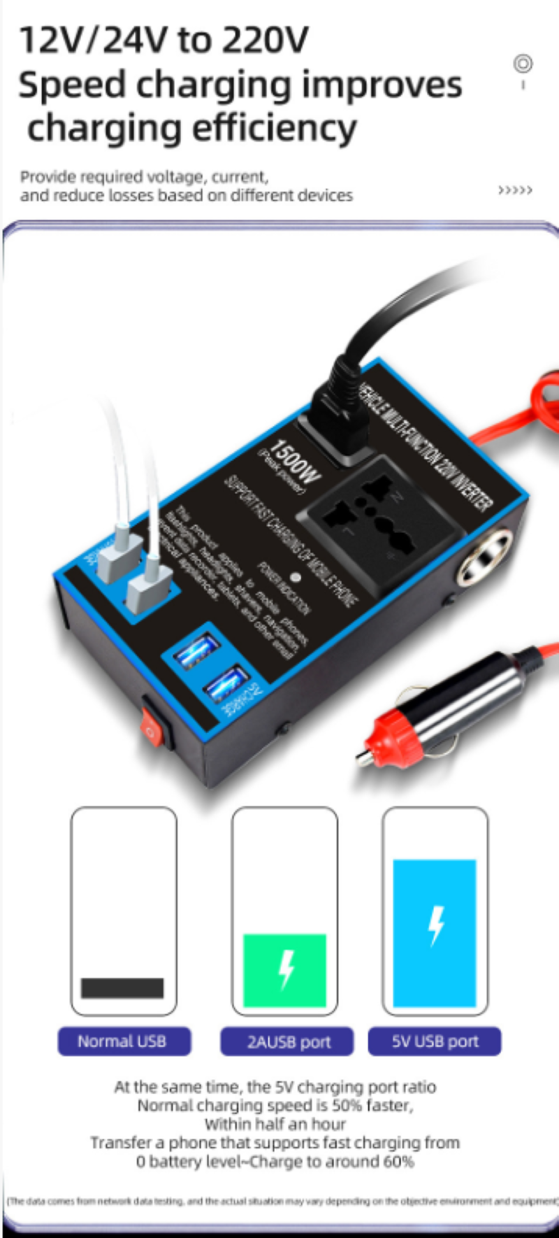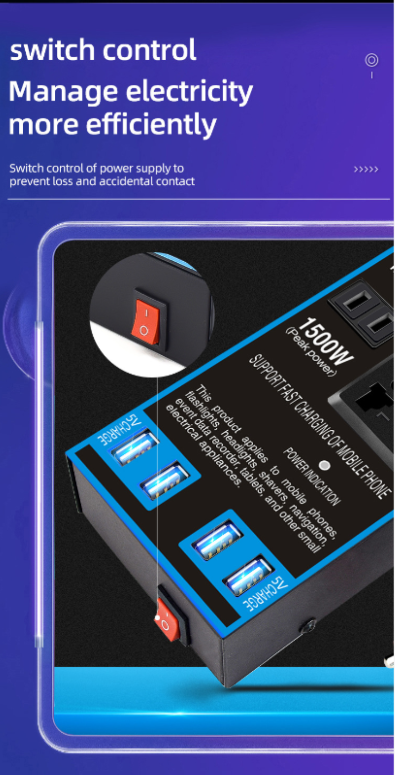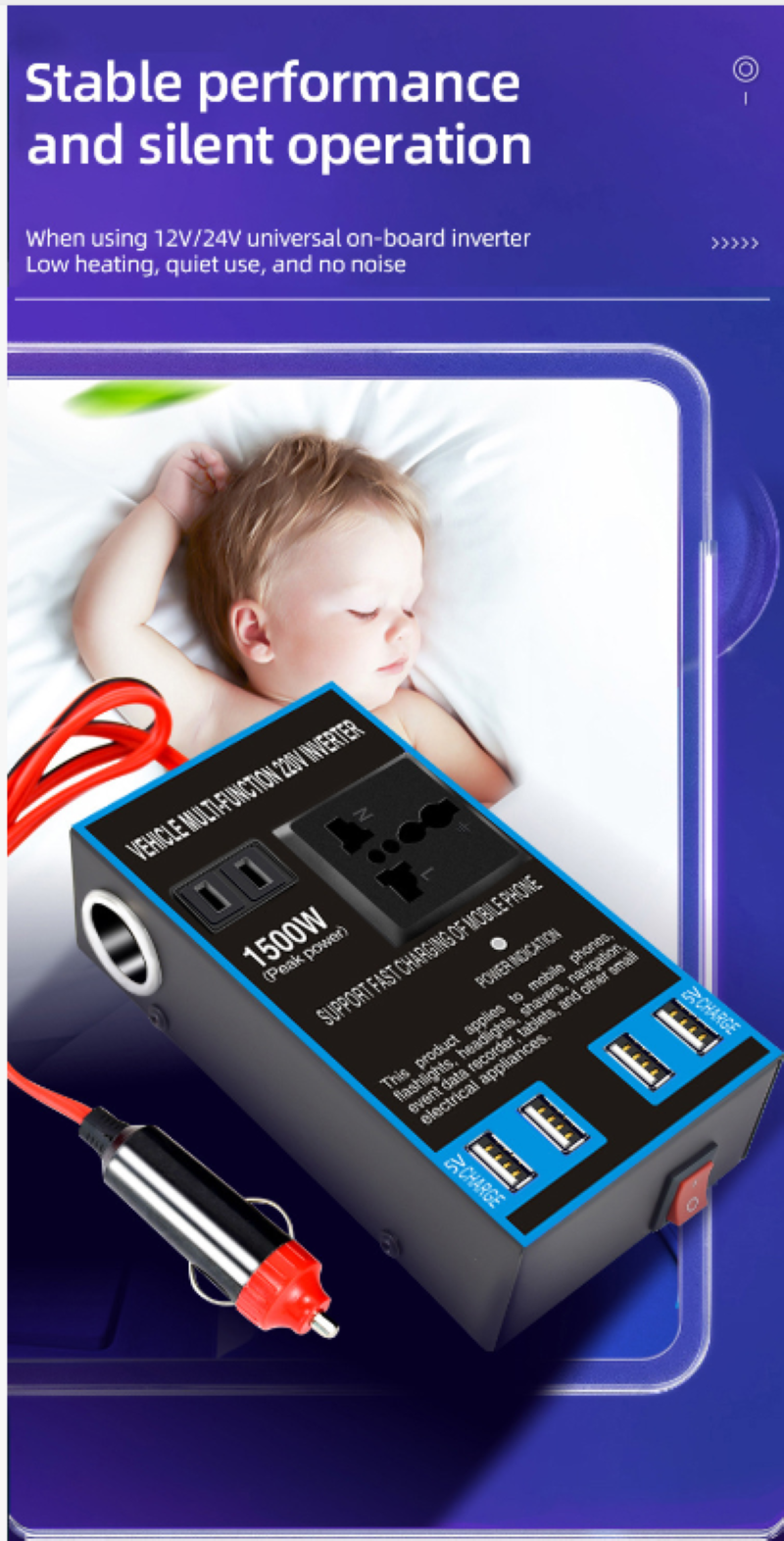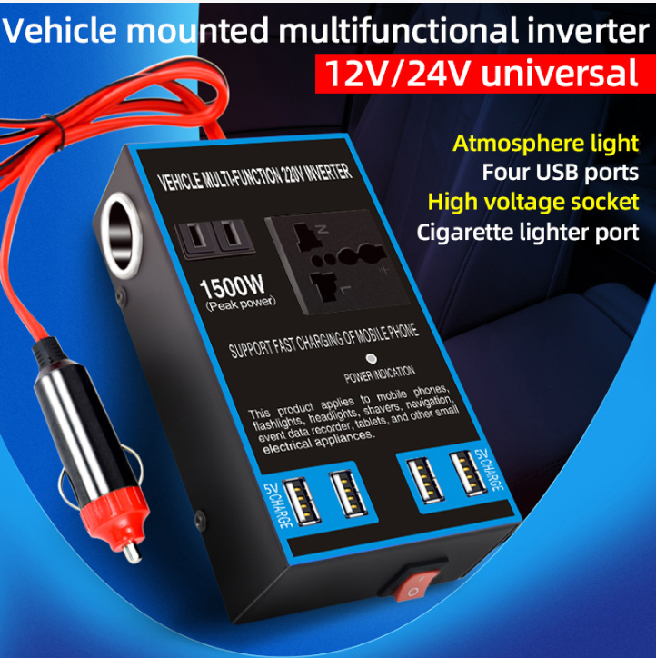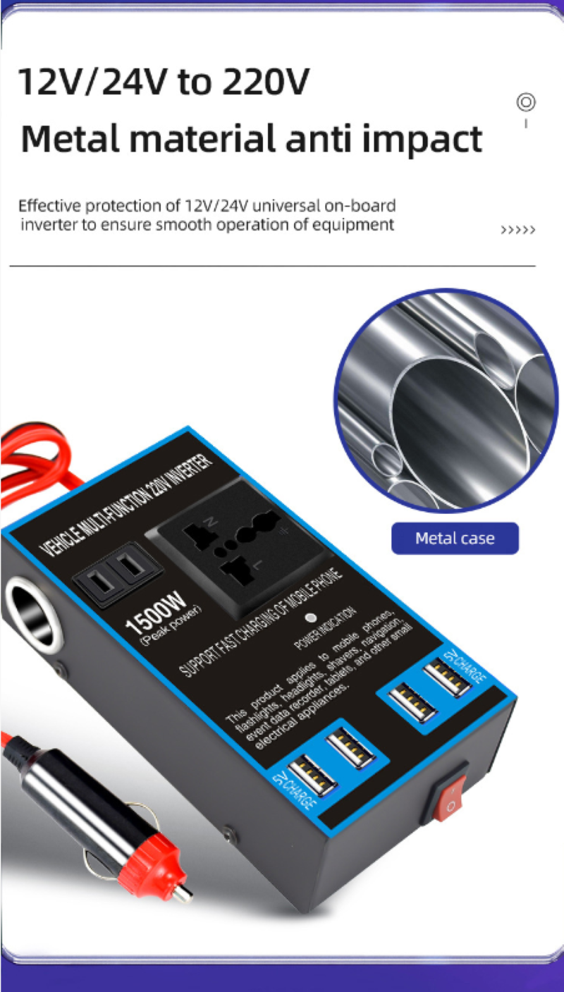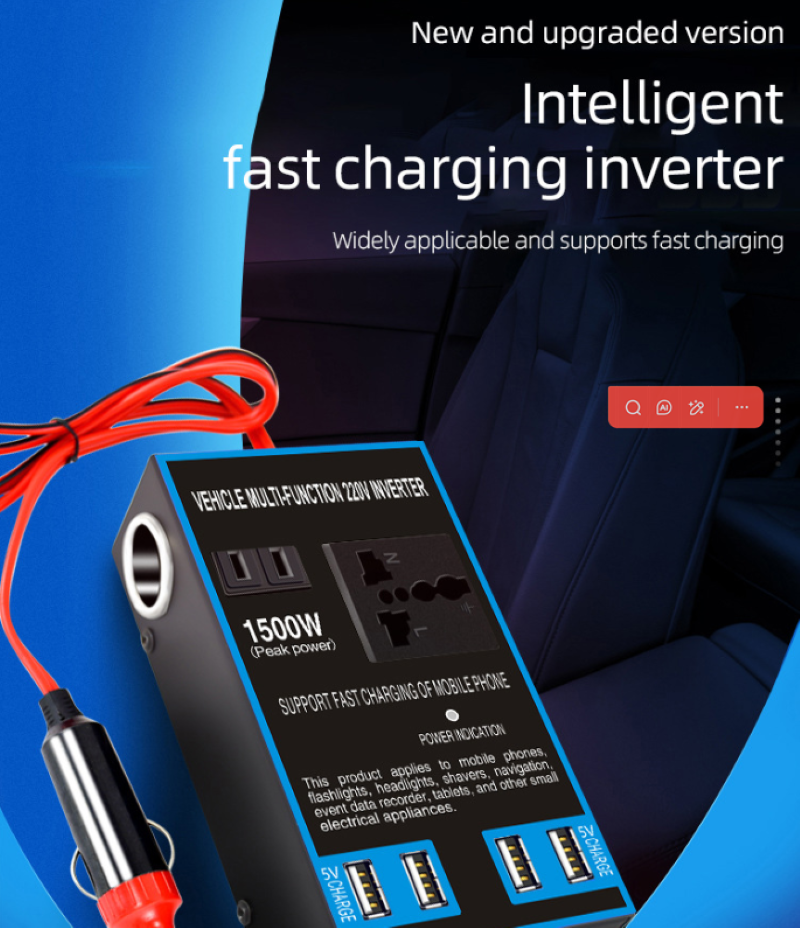 Inversor de carro 4USB: Com uma potência de saída de 1500 W, permite que todas as necessidades elétricas do seu veículo sejam "irrestritas"