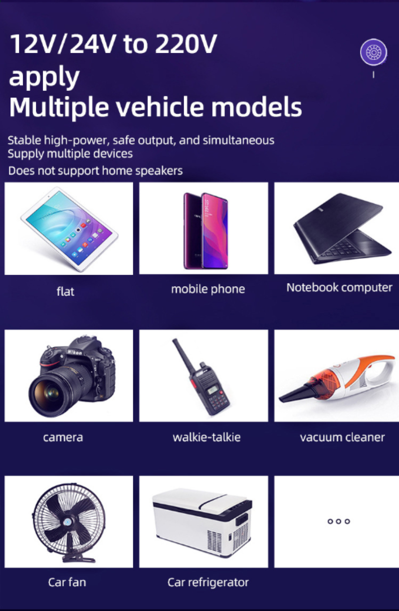 Você fica sem bateria do telefone durante a viagem? Você precisa de energia para o seu laptop? Você não pode usar pequenos eletrodomésticos no carro devido à falta de fonte de energia? Este inversor de carro 4USB, com sua potência de pico de 1500W, carregamento rápido de várias interfaces e várias proteções de segurança, tornou-se a "solução tudo-em-um" para as necessidades elétricas do veículo, permitindo que você desfrute de liberdade elétrica semelhante à energia elétrica de 220V durante sua viagem.