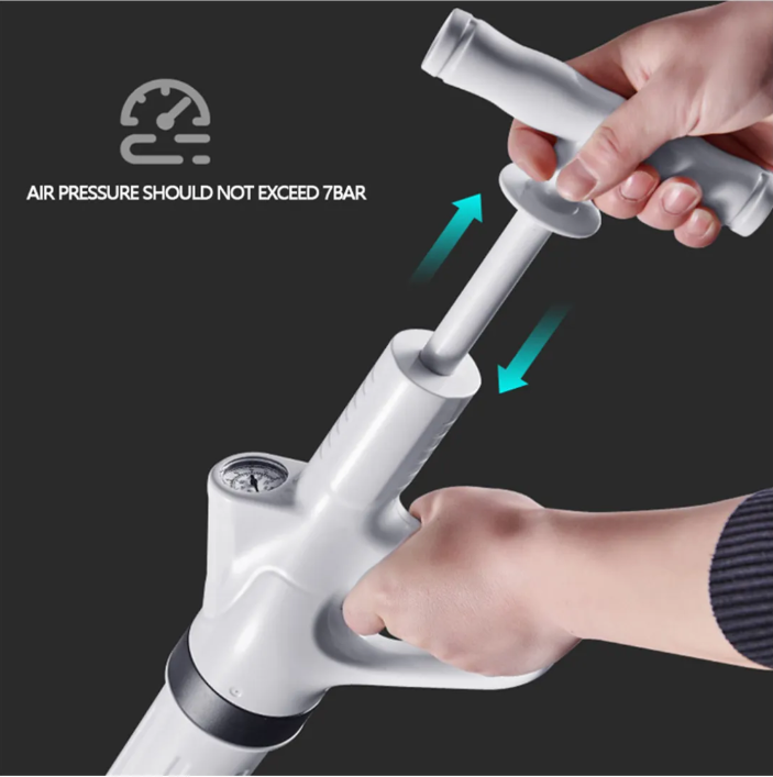 É um "modelo cuidadoso" em design, com um design integrado de descarga e bombeamento, e a operação é tão simples que é "semelhante a um haltere": não é necessária uma montagem complexa. Basta apontar para a abertura do tubo e pressionar o interruptor, e o fluxo de ar de alta pressão gerará força automaticamente. O tanque de ar espesso é durável e resistente e, mesmo com uso frequente, pode manter a pressão de ar estável. Em um ambiente de banheiro úmido, não é propenso a danos. É um "ajudante de longo prazo" para a manutenção de tubos domésticos.