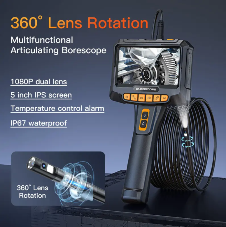 【Cabo de 5 metros】 Câmera de inspeção industrial equipada com tela de alta definição: o "olho do periscópio" para espaços estreitos, tornando a manutenção do equipamento "cristalina"