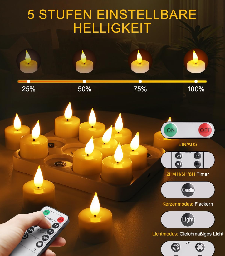 A atmosfera é totalmente intensificada: a chama simulada tremela naturalmente, a luz quente é suave e não deslumbrante. Seja para decoração de Natal, preparação do jantar ou luz noturna do quarto, pode criar instantaneamente uma atmosfera acolhedora; Combinado com controle remoto infravermelho, você pode ligar e ajustar o brilho deitado, e pessoas preguiçosas também conseguem entender facilmente a sensação de cerimônia.