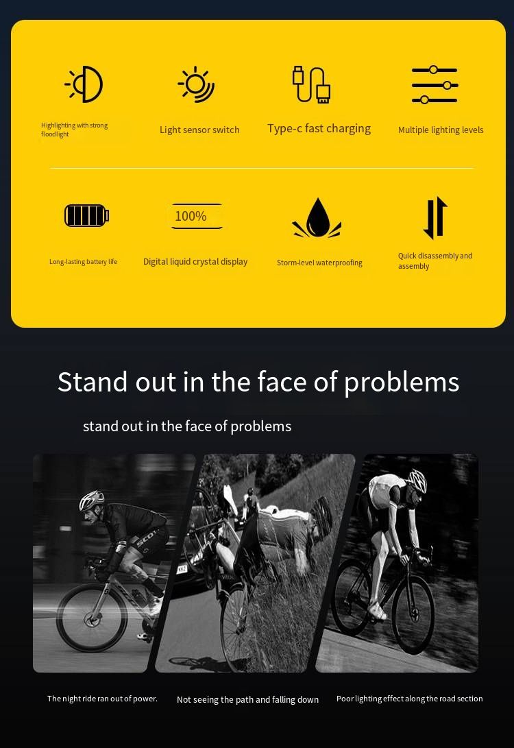 O ciclismo noturno está sempre se preocupando com a segurança devido à luz insuficiente e à complexidade de operar as luzes da bicicleta? Esta luz noturna de ciclismo inteligente com sensor de luz, com seus recursos avançados, como detecção inteligente de luz, bateria de longa duração e classificação IPX5 à prova d'água, se transforma em um "farol de segurança" para ciclistas noturnos, garantindo que todos os passeios noturnos sejam claramente visíveis e sem estresse.