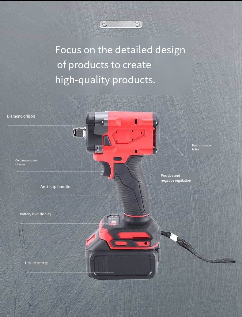 Imagine só, você está segurando-o na estação de trabalho de reparo de automóveis, de frente para os parafusos apertados dos pneus do carro e pressionando o interruptor. A máquina de chave de ar liga instantaneamente e "clica" para apertar o parafuso no lugar. Não há necessidade de exercer força bruta ou ser prejudicado por fios - esta máquina de chave de ar de reparo automático de bateria de lítio não é apenas uma ferramenta, mas também sua "extensão de força" durante as operações de reparo de automóveis, tornando cada processo de aperto de parafuso eficiente, fácil e preciso. A partir de agora, você pode dizer adeus a todos os problemas de apertar parafusos durante o reparo de automóveis.