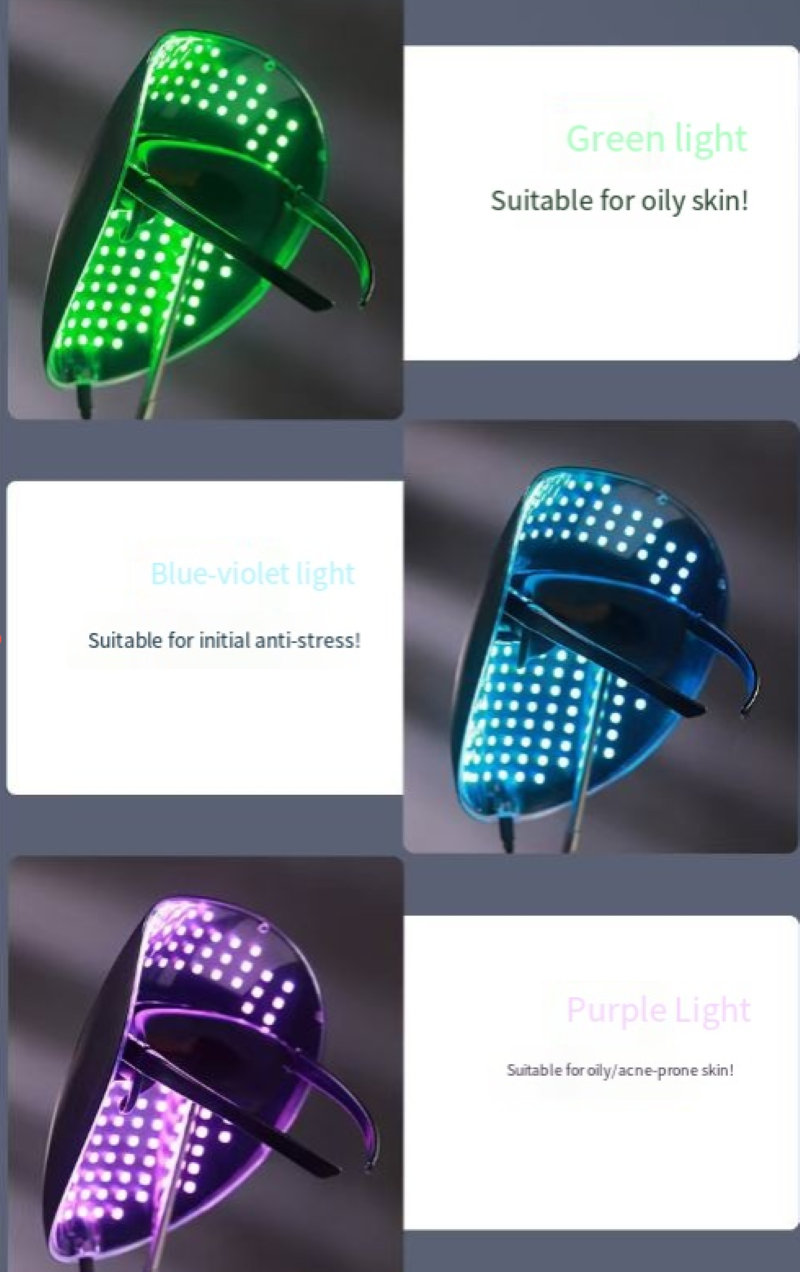 The inner side of the mask is covered with numerous light bulbs, and the light energy can cover the entire face - even the hard-to-reach areas such as the nostrils and the jawline can be taken care of. It won't be like small devices that "miss capturing" the skin. Different wavelengths of light correspond to different needs: