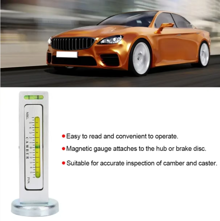A característica central é "atração magnética + medição precisa do ângulo": o ímã forte na parte inferior adere firmemente ao cubo e à suspensão sem deslizar; A escala de nível embutida pode ler o ângulo com precisão, permitindo visualizar a inclinação das rodas e o desvio do ângulo de direção, eliminando a necessidade de confiar na experiência para ajustes de teste. Os dados são precisos ao milímetro.