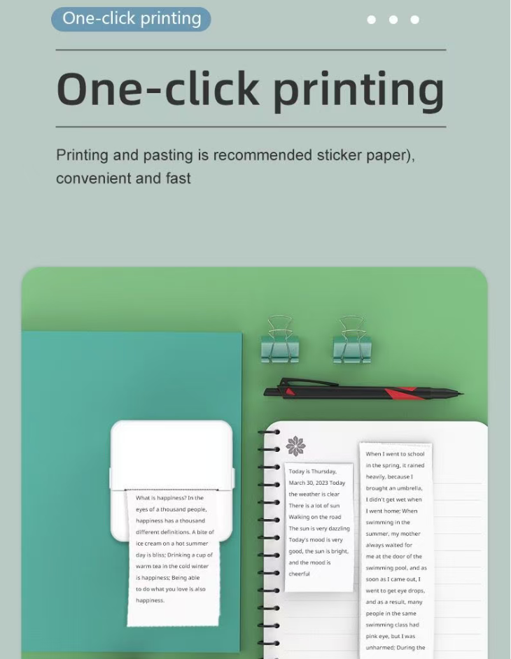 Você ainda está correndo pela gráfica para imprimir um documento? Você se arrepende da incapacidade de solidificar rapidamente os fragmentos de sua inspiração? Esta mini impressora, com seu poder surpreendente de "tamanho portátil, desempenho geral", tornou-se um "assistente multifuncional" para estudo, escritório e vida, permitindo que todas as necessidades de impressão sejam "instantaneamente satisfeitas e controladas livremente".