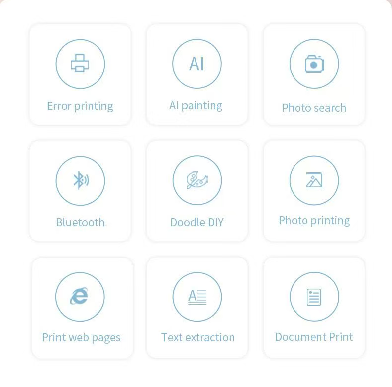 É equipado com tecnologia de reconhecimento gráfico óptico OCR, que pode extrair com precisão o texto em imagens e documentos. Quer se trate dos pontos de conhecimento em livros didáticos, das informações valiosas em páginas da web ou dos rascunhos de inspiração manuscritos, basta tirar uma foto para reconhecimento e ela pode ser convertida instantaneamente em texto imprimível. Ele também suporta impressão de vários tipos, como texto, imagens, rótulos e listas: os alunos o usam para organizar erros, extrair pontos-chave, tornando o conhecimento "visualizado"; empresários imprimem listas de tarefas, atas de reuniões, tornando o trabalho "organizado"; Na vida, imprime guias de viagem, fotos de família, tornando as memórias "fisicalizadas". O efeito de impressão de alta definição garante que cada saída seja clara e detalhada, sem qualquer perda durante a conversão da tela para o papel.
