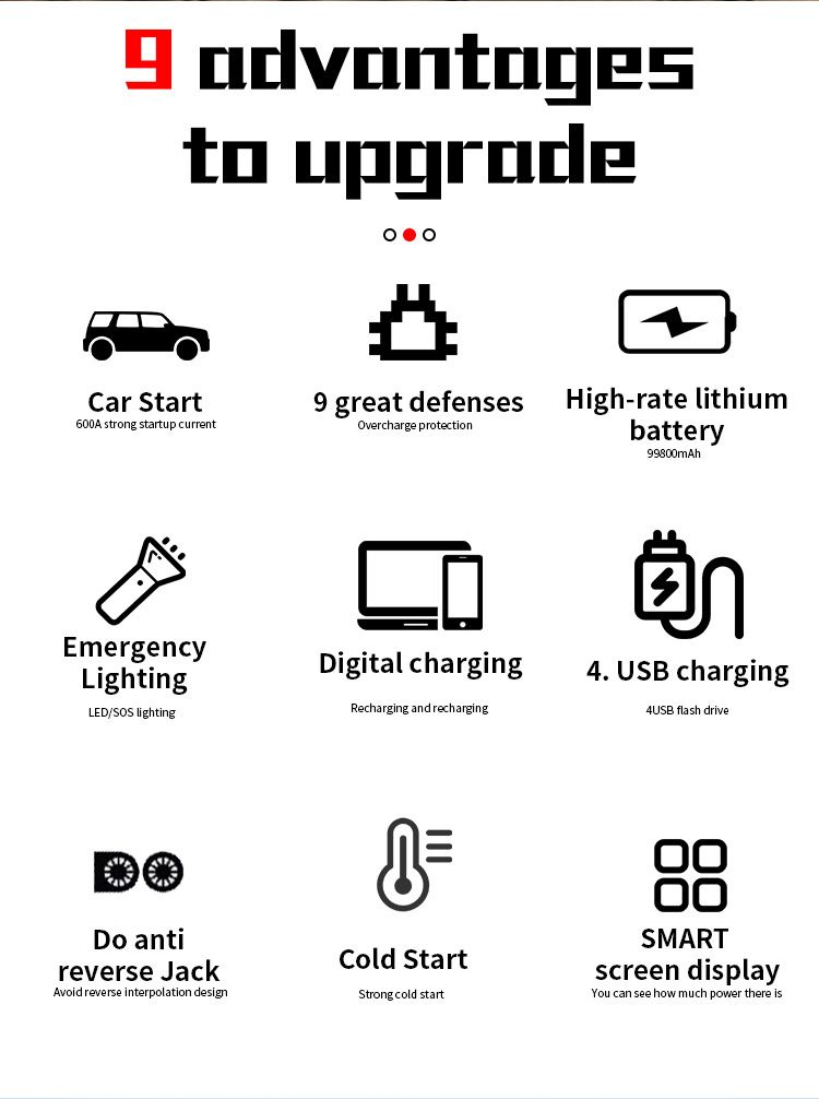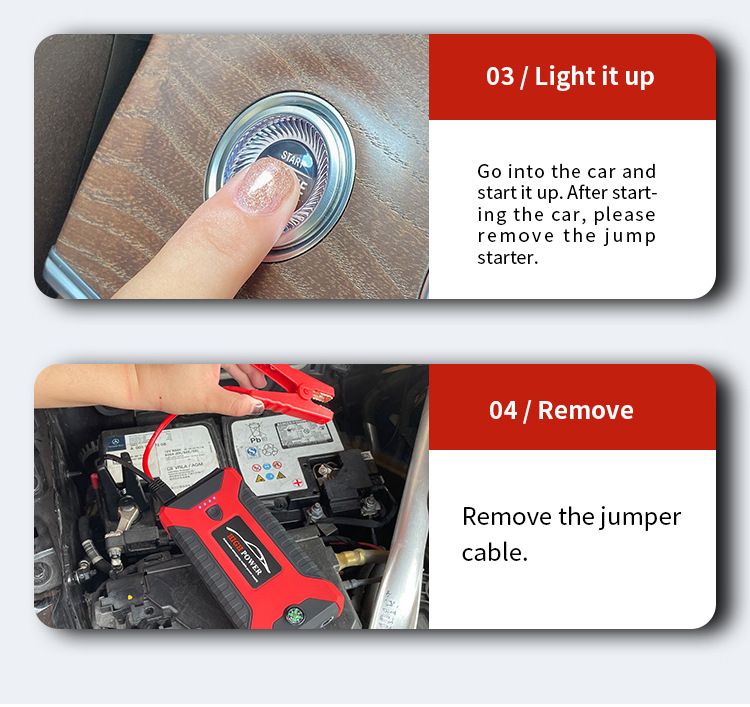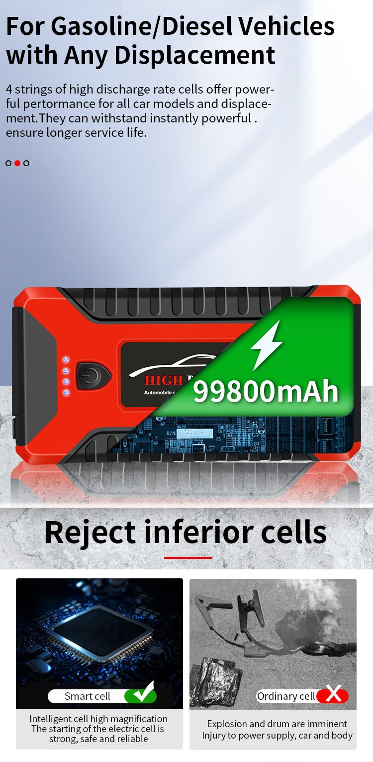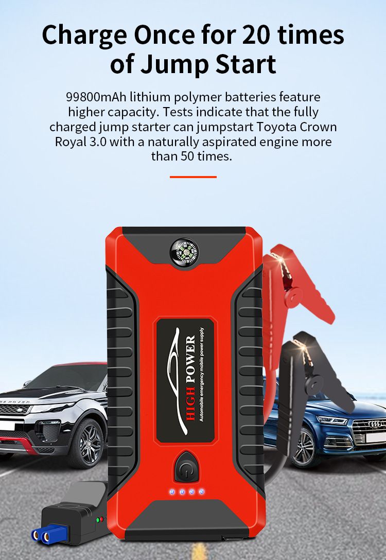 Você já teve uma experiência assim? Enquanto dirigia, em uma estrada remota na montanha, seu carro de repente não deu partida. Não havia aldeia à vista e nenhuma loja por perto. Você não conseguia passar pedindo ajuda e o sinal era ruim. Não entre em pânico! [Nome da marca] A fonte de alimentação de partida de emergência está aqui para ajudá-lo. É pequeno e leve, e não ocupa espaço no porta-malas. Basta conectá-lo à bateria do carro e ele ligará seu carro instantaneamente. Além disso, ele vem com uma lanterna LED de alta intensidade, que iluminará seu caminho e também carregará seu telefone, para que você não se preocupe em ficar sem bateria durante a viagem. Com a fonte de alimentação de partida de emergência, suas viagens serão mais seguras.