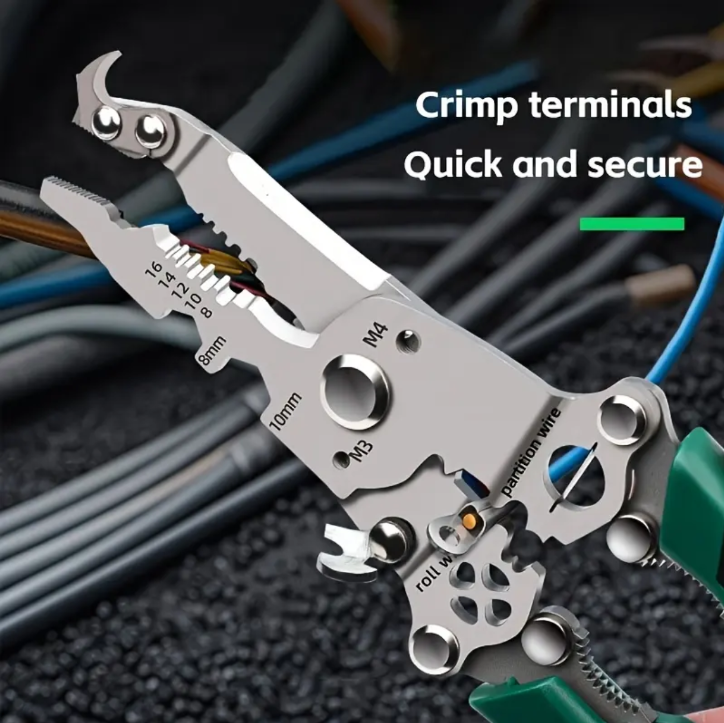 Este decapador de caneta elétrica dobrável combina as vantagens de armazenamento dobrável, detecção de caneta elétrica, decapagem eficiente de fios, enrolamento preciso, quebra de cabo limpa e adaptação de parâmetros. É uma "multi-ferramenta" versátil no campo das ferramentas elétricas. Com seu design de armazenamento dobrável, resolve os problemas de transporte e armazenamento de ferramentas. A função de detecção de caneta elétrica cria uma barreira de segurança para as operações dos trabalhadores elétricos. Sua capacidade eficiente de decapagem de fios melhora significativamente a eficiência do manuseio de cabos. O design preciso do enrolamento torna a conexão das linhas mais regular e bonita. O design da faca de quebra de cabo permite que você supere facilmente os problemas de processamento da pele externa do cabo. Os parâmetros adaptáveis atendem aos requisitos de operação do cabo em diferentes cenários.