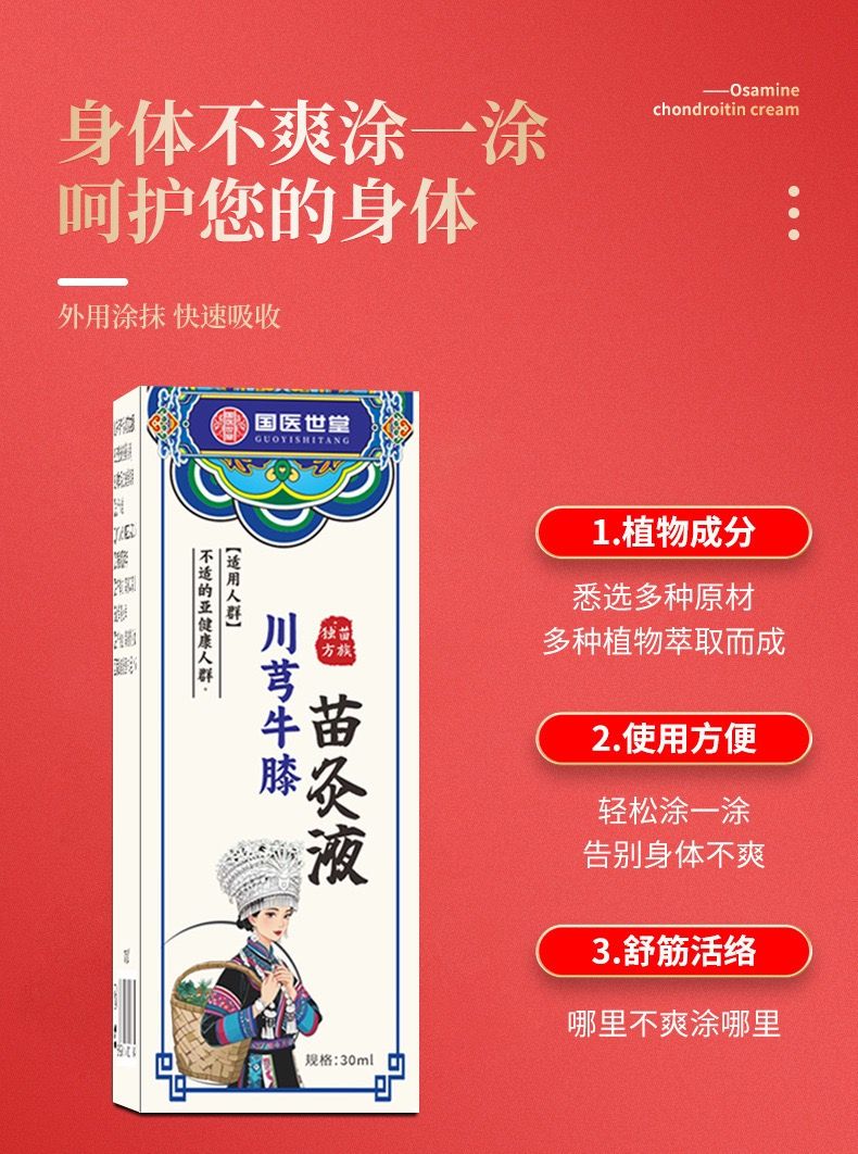 A fadiga física e a dor frequentemente nos surpreendem de surpresa? O Líquido Gu Yizhishang Chuanxiong Niujie Miao Ai, baseado na essência da fórmula Miao, condensa extratos vegetais como chuanxiong e niujie em um bom produto externo.