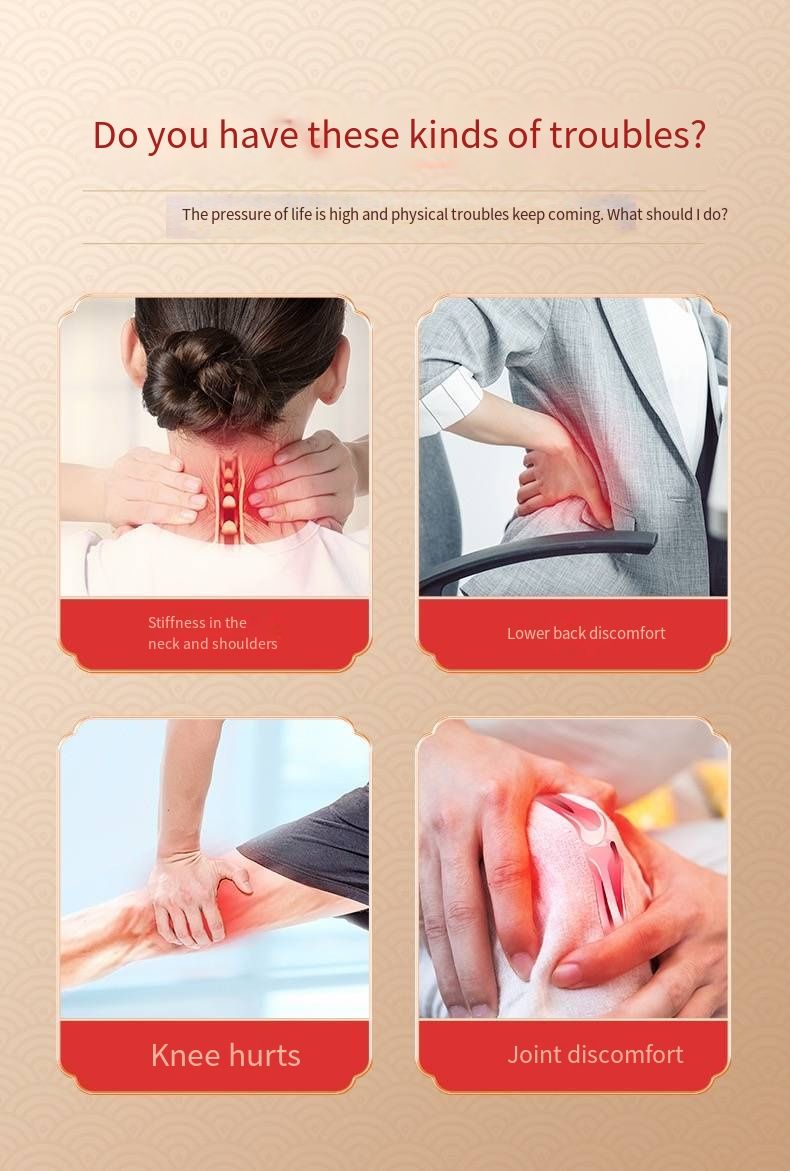 Depende de uma fórmula nutritiva herbal + tecnologia de penetração de pequenas moléculas: as ervas nutritivas como "pequenas pás", abrem os tecidos tensos e "arrancam" o frio e a umidade das articulações; Flores vermelhas e Panax não apenas promovem a circulação sanguínea e aliviam a congestão ao longo dos tecidos, mas também "desenrolam" a dor e tensão no ombro e nas costas; Além disso, os componentes altamente ativos de penetração fazem com que o líquido penetre na pele em poucos segundos, não fique pegajoso ou grudado nas roupas, e o calor se espalha pelos músculos e ossos, reduzindo a rigidez dos ombros e pescoço e a dor nas costas em poucos minutos – até mesmo a coceira causada pela aplicação de pomadas pode ser evitada!