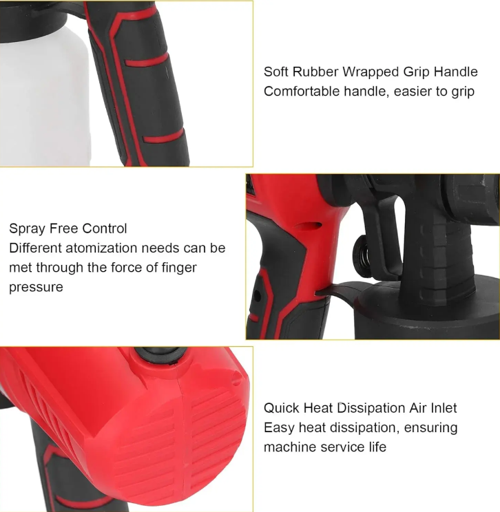 4. Tratamento antiderrapante A alça foi projetada para ser antiderrapante, conveniente e fácil de segurar, permitindo a pulverização em níveis elevados. Escopo aplicável: decoração de interiores, pulverização iling, pulverização de aço inoxidável, pulverização de trâminas, pulverização de verniz, tingimento de couro sintético, pulverização de escadas, etc.