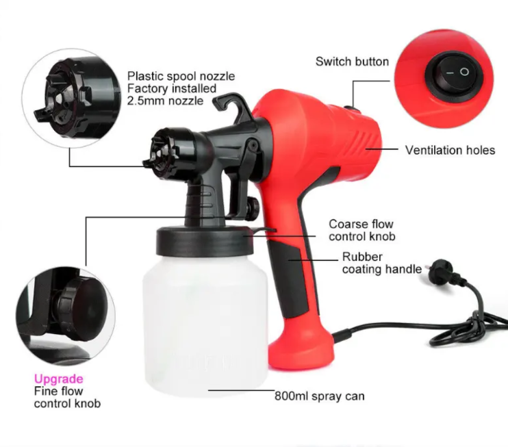 Pulverizador de tinta Pistola de pulverização elétrica: Pistola de tinta spray de 700 W com recipiente de 40,58 onças 4 bicos e 3 padrões Fluxo de ar ajustável Limpeza fácil para pintura de casa, móveis, muros, porta, vermelho, pistola de tinta spray sem fio, pistola de tinta spray, pistola de pulverização bico diferente, pistola de tinta spray com pistola de tinta spray de carro, pistola operada, kit de pulverização de tinta, acessórios de pulverizador de tinta sem ar, Equipamento de pintura, Projetos domésticos DIY, Design ergonômico, Pulverizador leve, Construção durável