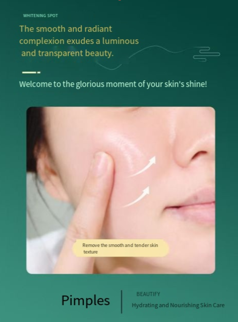 Depois de usar por um tempo, você notará mudanças notáveis na sua pele. A tez antes opaca gradualmente se torna clara e uniforme, e as manchas de pigmentação são significativamente reduzidas. A pele parece estar iluminada, emitindo um brilho branco puro. Além disso, seu efeito hidratante é excelente, repondo a hidratação suficiente da pele e mantendo-a hidratada e cheia o tempo todo.