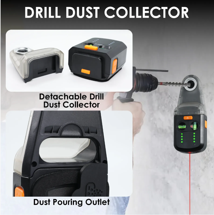 Não deixe que a poeira e os erros da perfuração afetem sua experiência na construção. Adquira este coletor de pó elétrico com nível a laser, torne as operações precisas, limpas e simples, e a partir de agora, a perfuração de decoração residencial e a reforma de paredes poderão ser "totalmente controladas" por você. O resultado é belo e profissional, mostrando totalmente seu estilo de "mestre artesanal"!