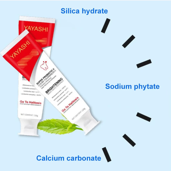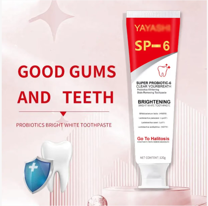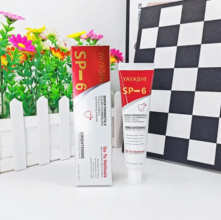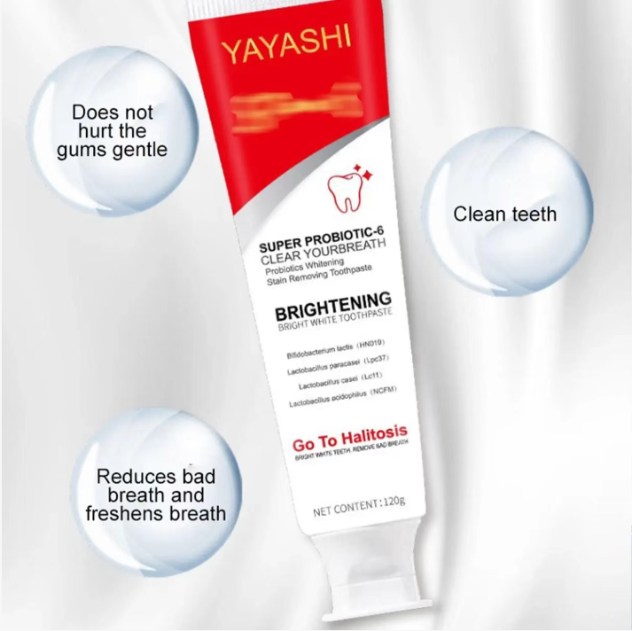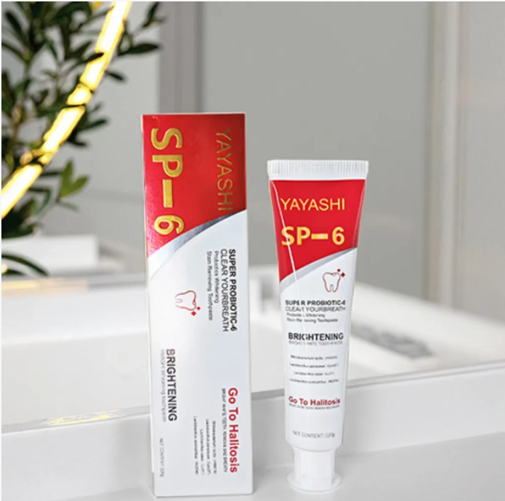 YAYASHI SP - 6 Pasta Probiótica para Clareamento e Remoção de Manchas combina o cuidado saudável dos probióticos com poderosos efeitos de clareamento e remoção de manchas, trazendo uma atualização completa do clareamento dental para a saúde bucal. Diga adeus aos problemas de manchas e mau hálito, e tenha um sorriso confiante. Comece a escolher a partir de agora.