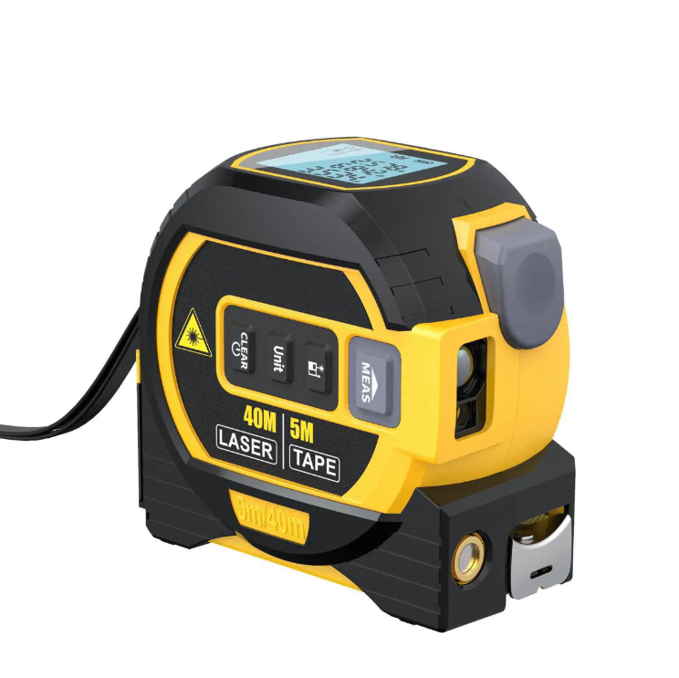 Ele combina uma fita métrica, medição de distância a laser e display digital. A fita de 5 metros atende às medições diárias de curta distância, e a medição a laser de 40 metros lida facilmente com longas distâncias. A tela digital apresenta claramente os dados, eliminando erros de leitura.