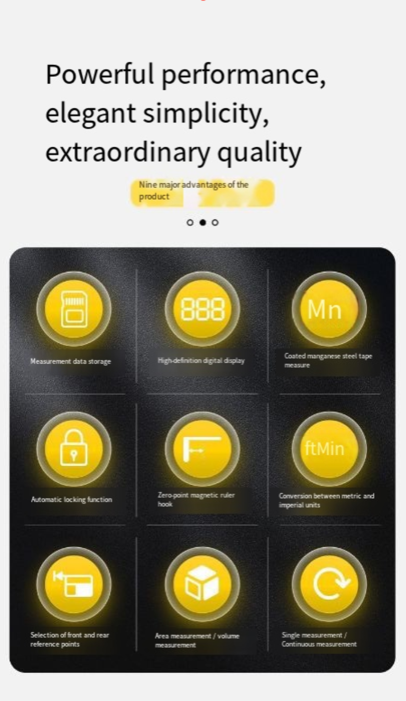 Em vários campos, como construção, decoração e topografia de engenharia, ferramentas de medição precisas e eficientes são a chave para melhorar a qualidade e a eficiência do trabalho. Este medidor de distância a laser infravermelho três em um, com vantagens como "medição de distância a laser, precisão de longo alcance; medição de fita métrica, flexibilidade de curto alcance; armazenamento de dados, gerenciamento conveniente; exibição de alta definição, clara e intuitiva; travamento inteligente, operação fácil; comutação de várias unidades, ampla adaptabilidade", tornou-se um assistente confiável para trabalhadores de medição, fornecendo soluções abrangentes para várias necessidades de medição.