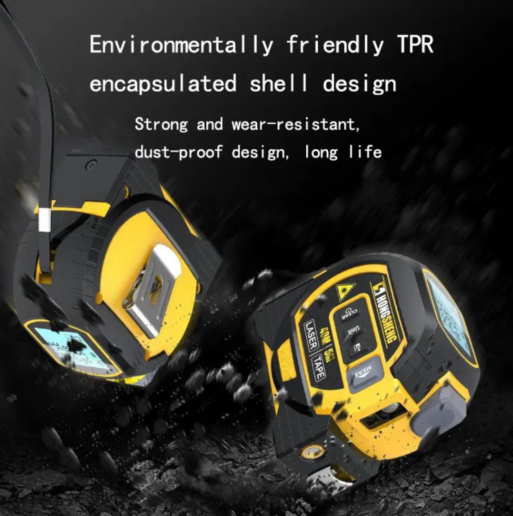 O invólucro é feito de revestimento de borracha TPR ecológico, que é durável e resistente a choques, garantindo uma operação estável mesmo em ambientes complexos, como canteiros de obras. O design da fita métrica de travamento automático permite puxar suavemente e travar com segurança, tornando-o extremamente conveniente para operar com uma mão.