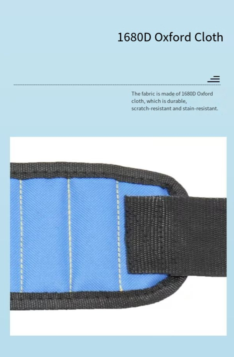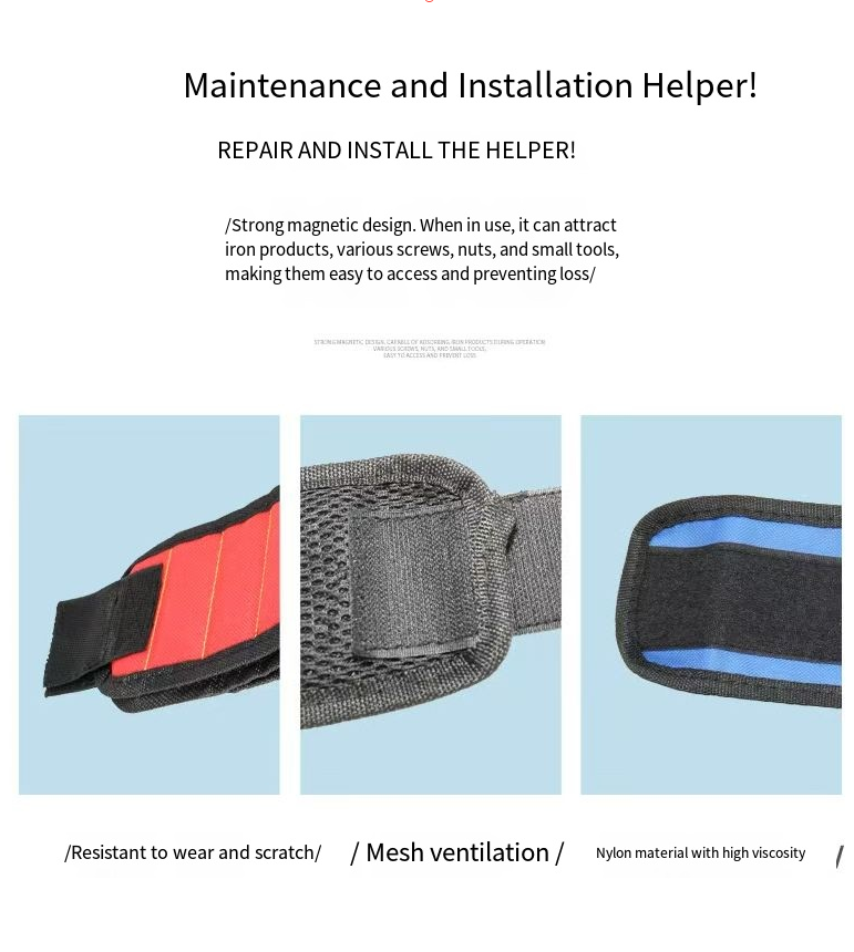 A pulseira é equipada com múltiplos ímãs de neodímio-ferro-boro de alta densidade, proporcionando adesão suficiente: ela pode "agarrar" parafusos, pregos, brocas e porcas com firmeza, e não cai nem mesmo ao levantar ou dobrar; Ele pode comportar 10 ou mais parafusos ou 5-8 pregos por vez, eliminando a necessidade de reabastecer os suprimentos com frequência e evitando a ineficiência de pegar peças repetidamente.