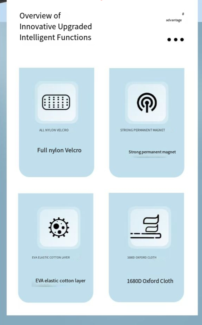 Feito de tecido Oxford grosso, é resistente a arranhões, manchas e fácil de limpar: quando detritos de construção ou óleo de manutenção respingam sobre ele, um lenço umedecido deixa limpo; O tecido tem forte resistência e, mesmo após atrito e impacto prolongados, não se enbola nem quebra, com bordas reforçadas que têm menos probabilidade de desgastar, adequado para trabalhos mais difíceis como carpintaria e reparo automotivo.